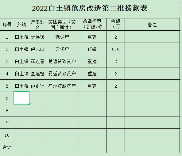 白土鎮(zhèn)2022年農(nóng)村危房改造認(rèn)定結(jié)果