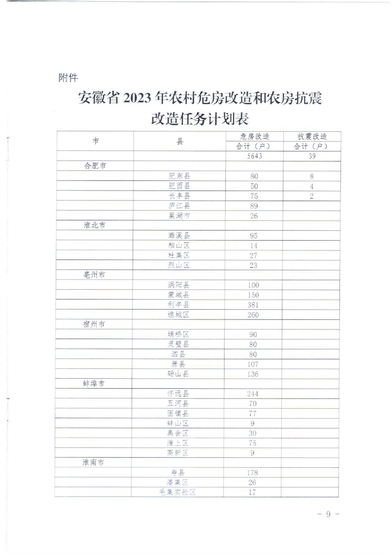 安徽省住房城鄉(xiāng)建設(shè)廳安徽省財(cái)政廳《關(guān)于2023年農(nóng)村危房改造、農(nóng)房抗震改造和農(nóng)房安全隱患排查整治工作的通知》
