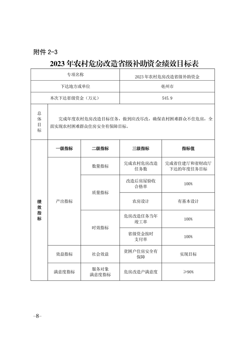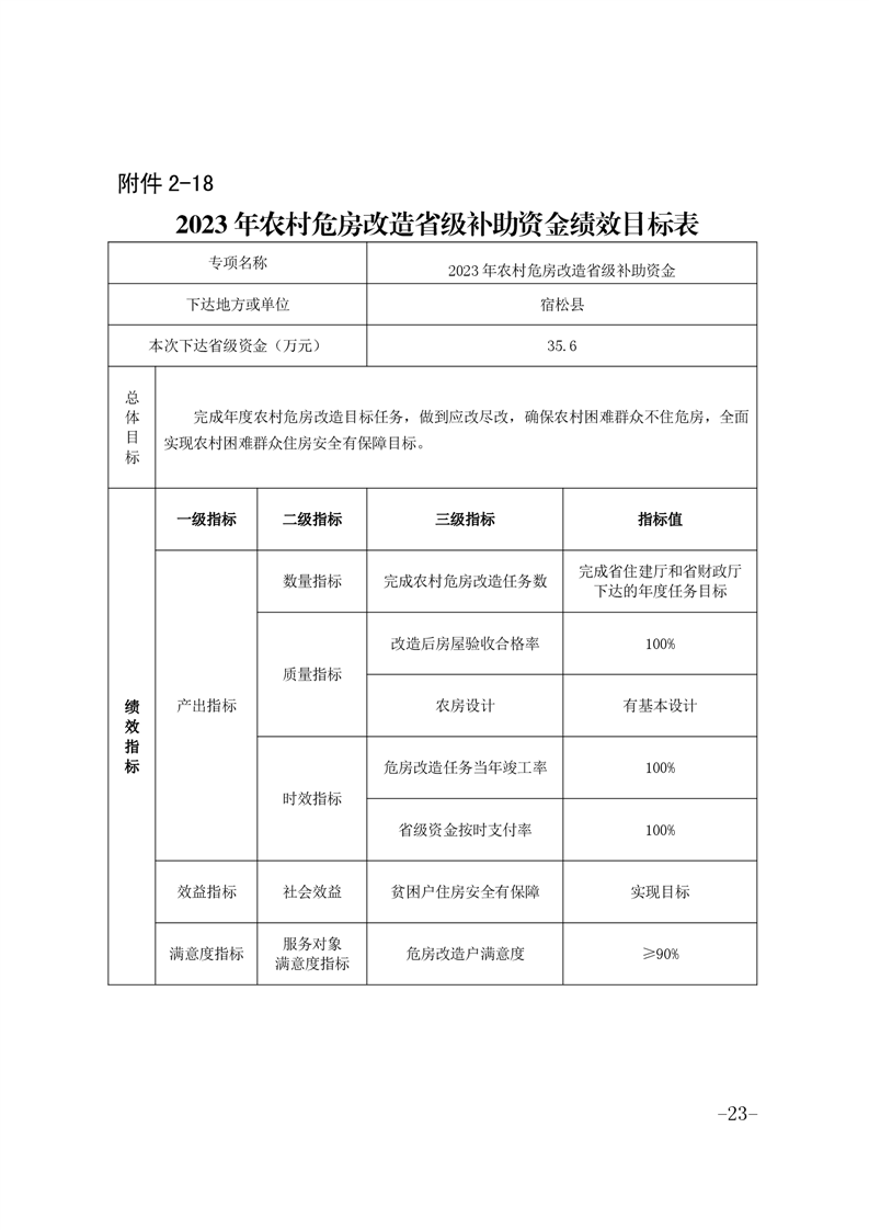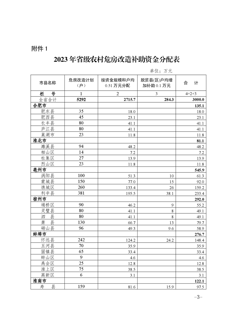 安徽省財政廳安徽省住房和城鄉(xiāng)建設(shè)廳關(guān)于下達(dá)2023年省級農(nóng)村危房改造補(bǔ)助資金的通知