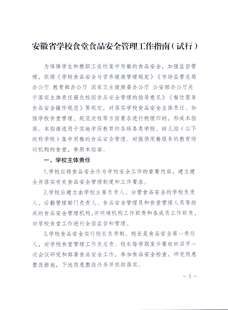 【政策文件】宿州市教育體育局轉發(fā)安徽省教育廳關于印發(fā)《安徽省學校食堂食品安全管理工作指南(試行)》的通知