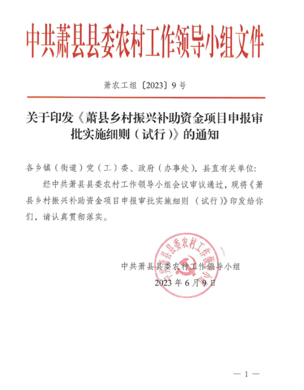 關(guān)于印發(fā)《蕭縣鄉(xiāng)村振興補(bǔ)助資金項(xiàng)目申報(bào)審批實(shí)施細(xì)則(試行)》的通知