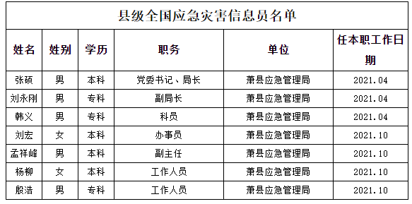 縣級(jí)全國(guó)應(yīng)急災(zāi)害信息員名單