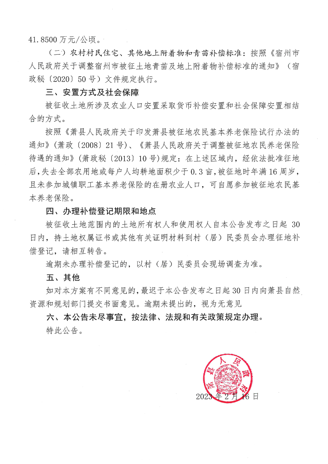 蕭縣2023年第1批次城鎮(zhèn)建設(shè)用地補(bǔ)償安置方案的公告