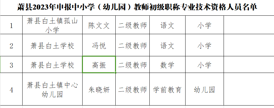 白土鎮(zhèn)2023年申報(bào)中小學(xué)(幼兒園)教師初級(jí)職稱專業(yè)技術(shù)資格人員名單
