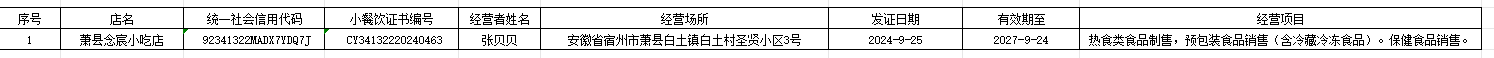 白土鎮(zhèn)2024年9月小餐飲、食品攤販備案情況