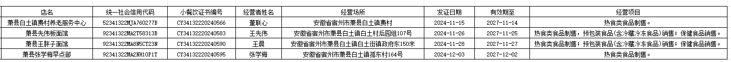 白土鎮(zhèn)2024年11月小餐飲、食品攤販備案情況