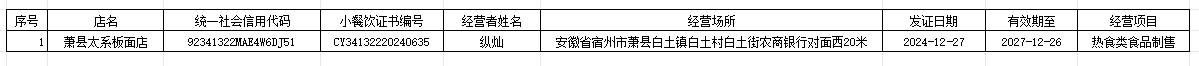 白土鎮(zhèn)2024年12月小餐飲、食品攤販備案情況