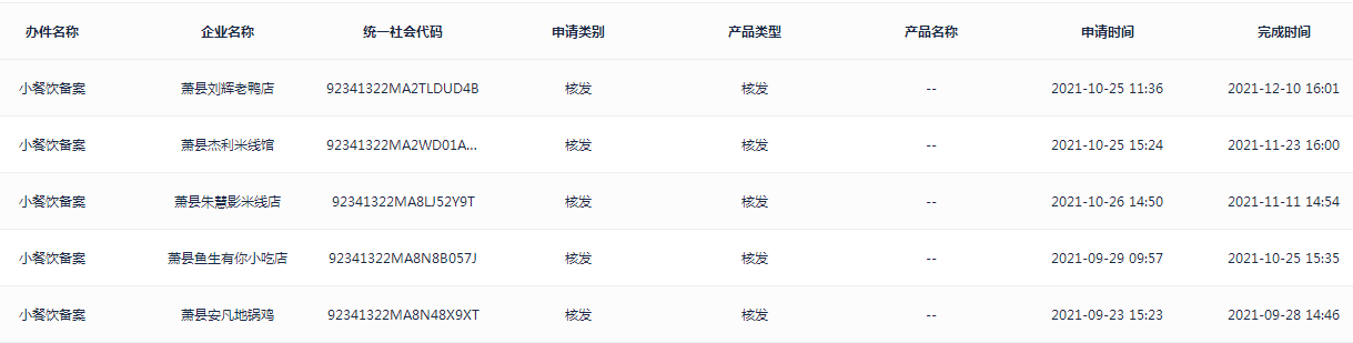 蕭縣大屯鎮(zhèn)2021年第三四季度小餐飲、食品攤販備案基本信息