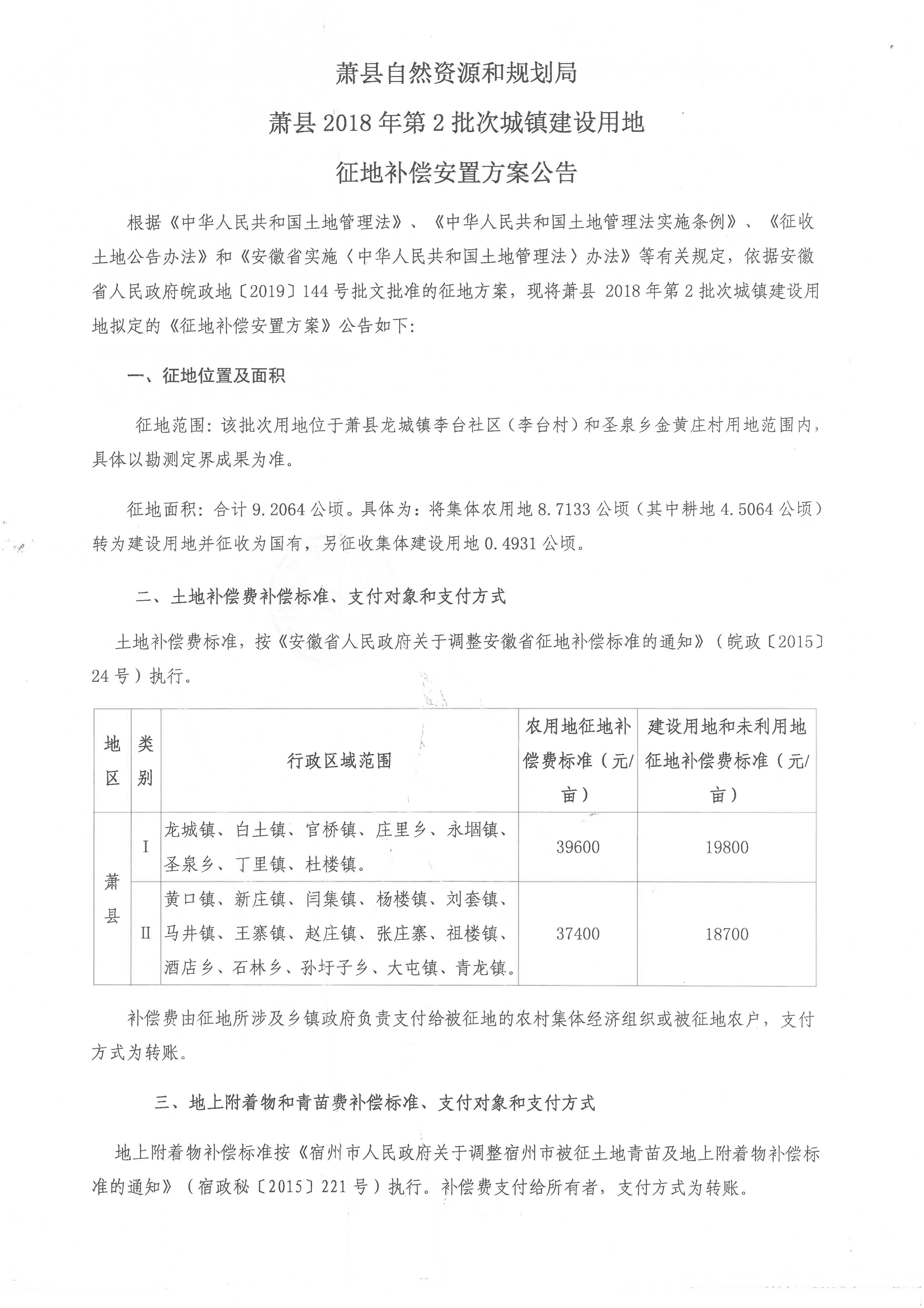 蕭縣2018年第2批次城鎮(zhèn)建設(shè)用地征地補(bǔ)償安置方案公告