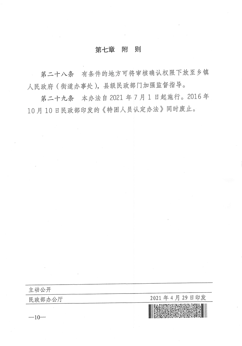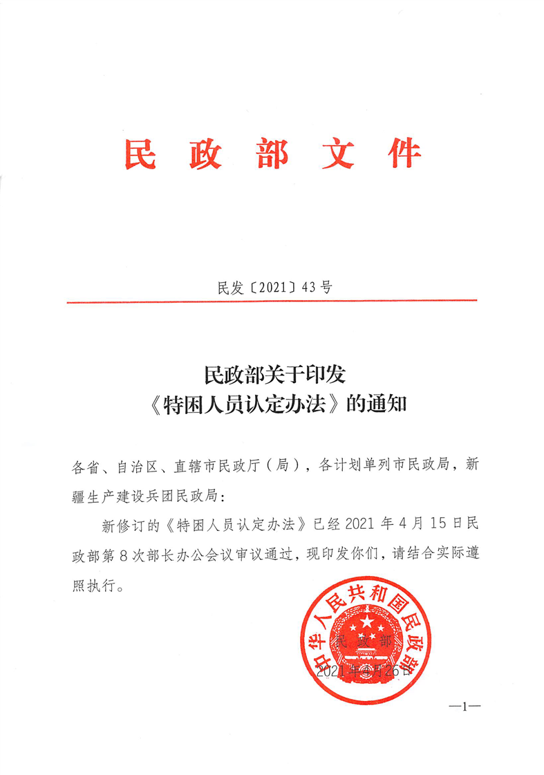 民政部關(guān)于印發(fā)《特困人員認定辦法》的通知(民發(fā)〔2021〕43號)