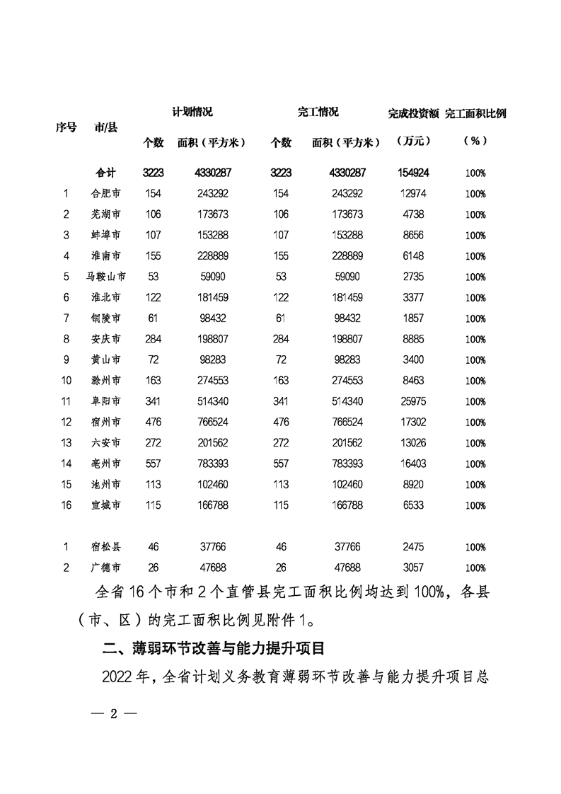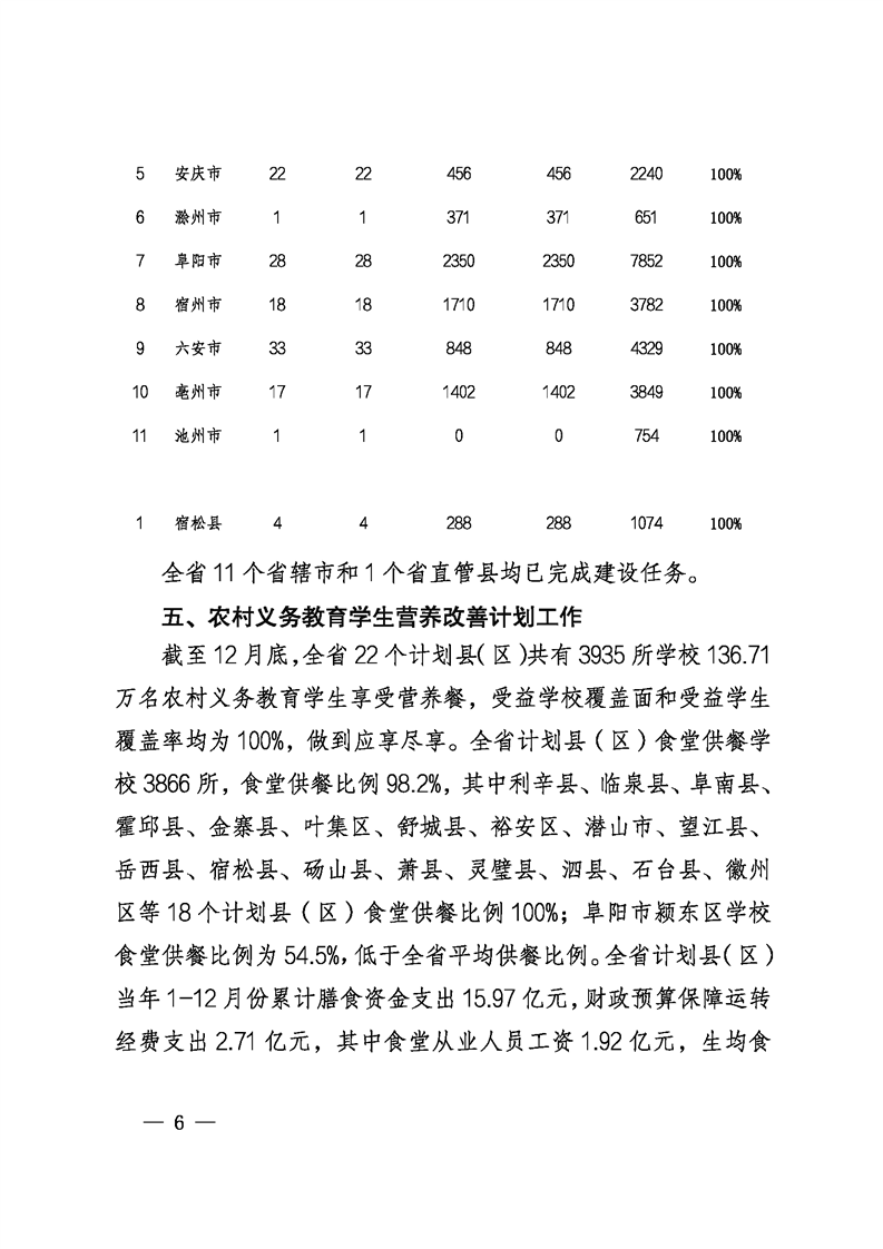 安徽省教育廳關(guān)于基礎(chǔ)教育項(xiàng)目建設(shè)及學(xué)生營(yíng)養(yǎng)改善計(jì)劃等截至12月底進(jìn)展的簡(jiǎn)要情況