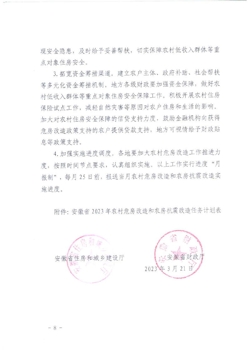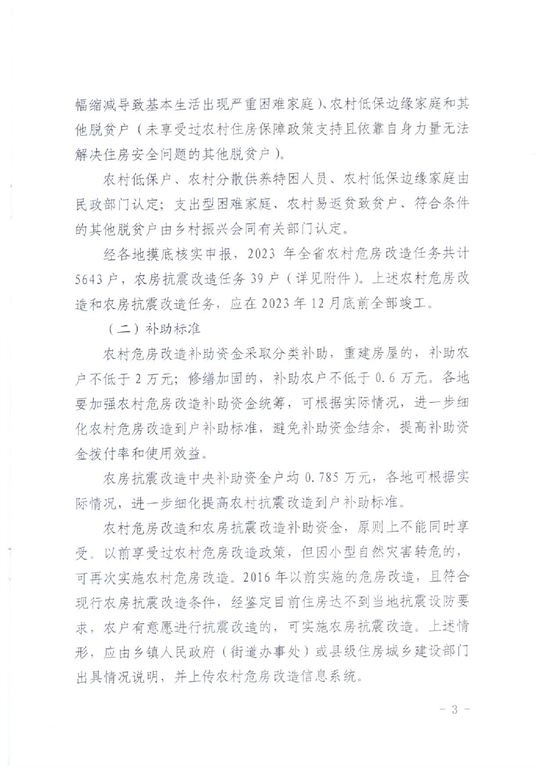 安徽省住房城鄉(xiāng)建設(shè)廳安徽省財(cái)政廳《關(guān)于2023年農(nóng)村危房改造、農(nóng)房抗震改造和農(nóng)房安全隱患排查整治工作的通知》