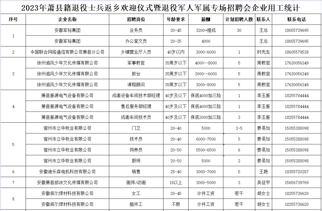 為深入貫徹落實習近平總書記關(guān)于退役軍人工作的重要論述和重要指示批示精神,積極營造尊崇的社會氛圍,幫助退役士兵解決由軍隊到地方的角色轉(zhuǎn)換,同時拓寬退役軍人就業(yè)創(chuàng)業(yè)渠道,提升退役軍人就業(yè)創(chuàng)業(yè)質(zhì)量,更好的為地方經(jīng)濟社會發(fā)展貢獻力量,我縣組織開展2023年蕭縣籍退役士兵返鄉(xiāng)歡迎儀式暨退役軍人軍屬專場招聘專項活動。
