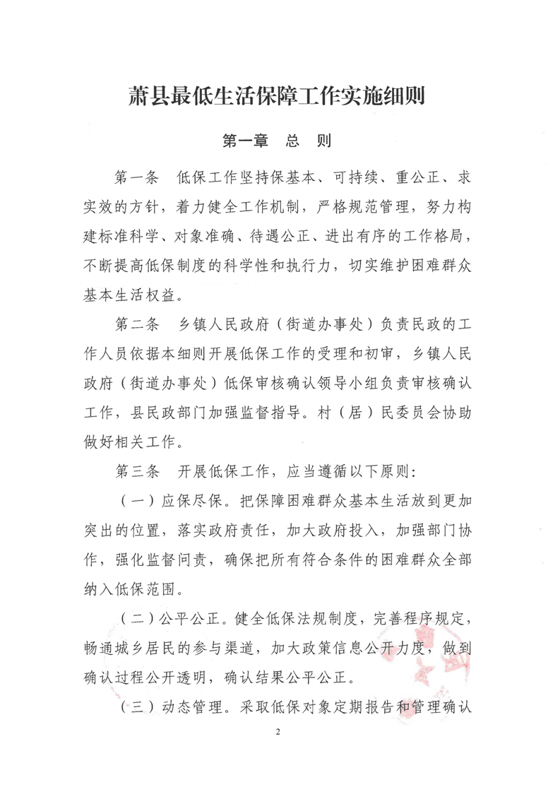 關于印發(fā)《蕭縣最低生活保障工作實施細則》的通知(蕭民發(fā)〔2024〕15號)