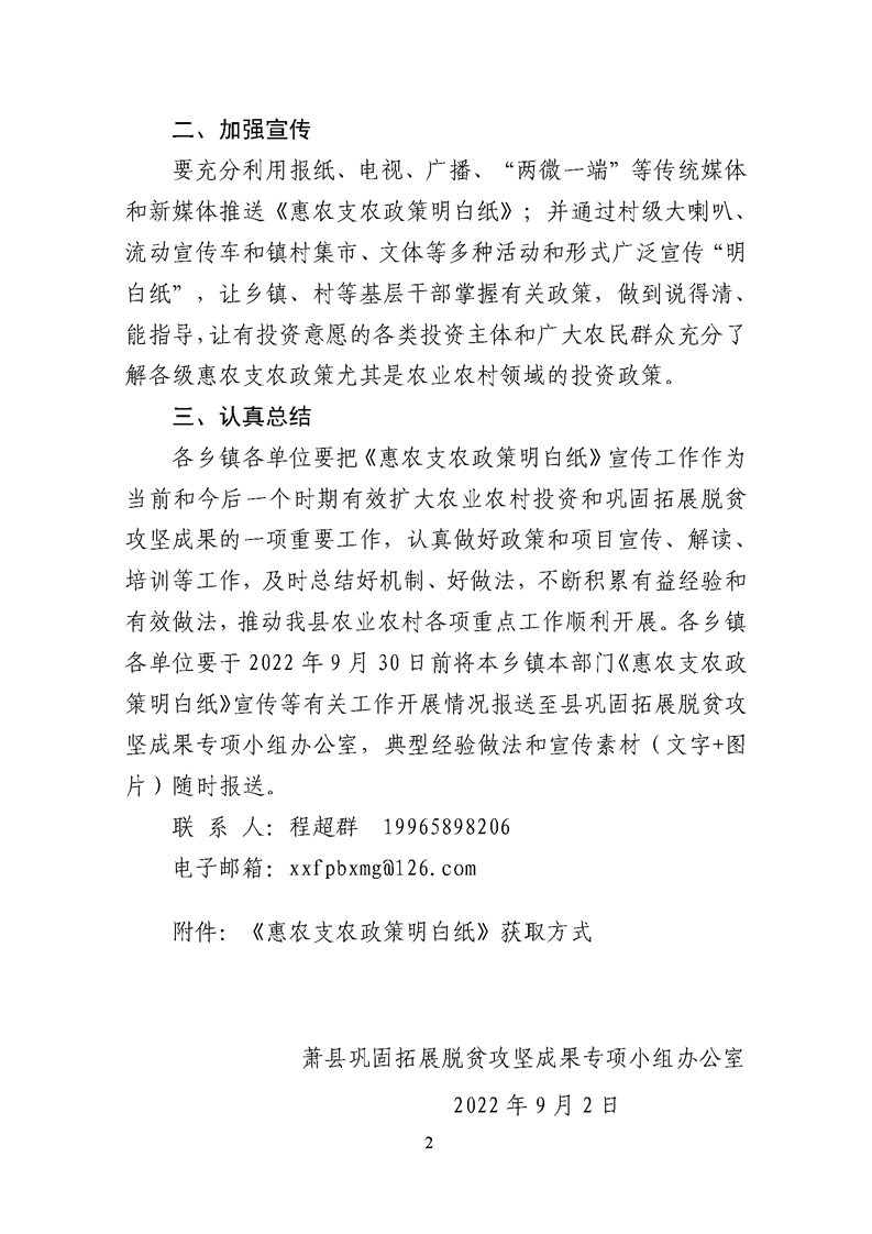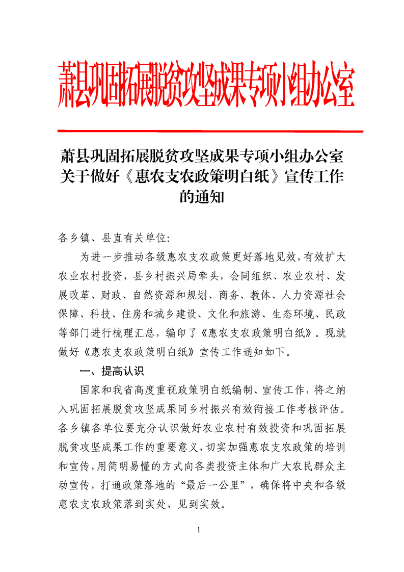 蕭縣鞏固拓展脫貧攻堅成果專項小組辦公室關于做好《惠農支農政策明白紙》宣傳工作的通知