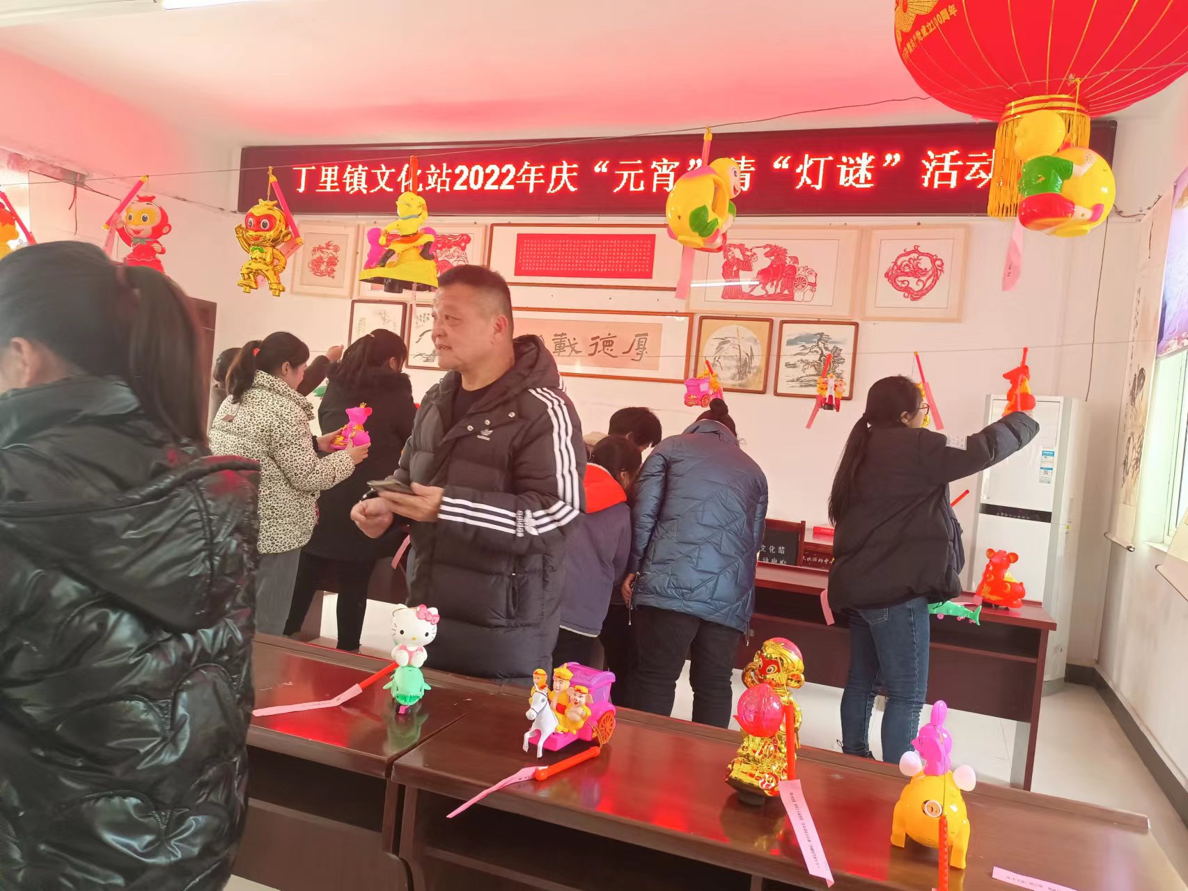 2022年2月14日,丁里鎮(zhèn)綜合文化站舉行元宵節(jié)猜燈謎活動(dòng),文化站工作人員和參與群眾一片喜氣洋洋。