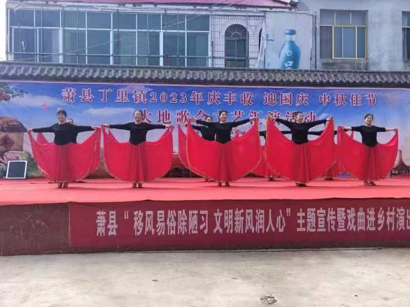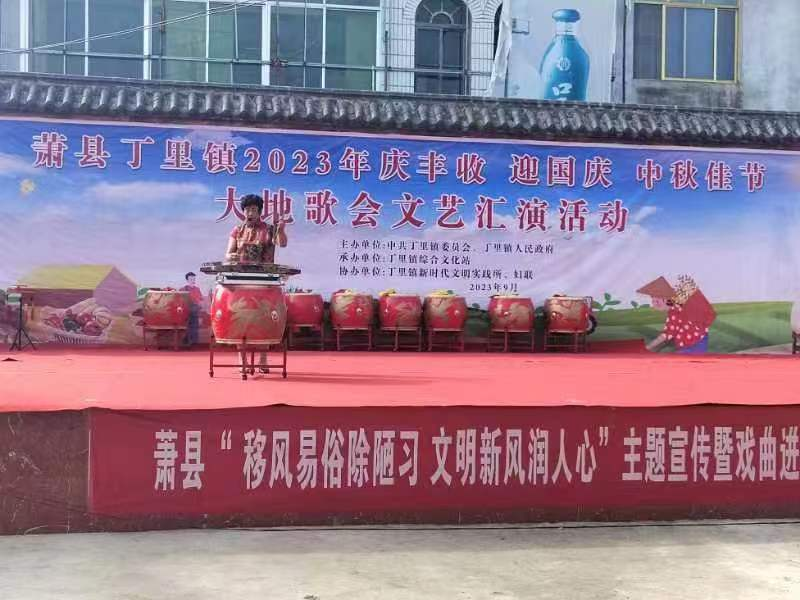 9月27日,蕭縣丁里鎮(zhèn)舉辦慶祝第六個(gè)“中國農(nóng)民豐收節(jié)”,以“慶豐收、迎國慶”為主題的大地歌會文藝展演活動正在上演,鎮(zhèn)文化站自編自演非遺曲藝大鼓《與時(shí)俱進(jìn)美蕭縣》,通俗的語言描繪出新時(shí)代的美好藍(lán)圖,展示出新時(shí)代的蕭縣風(fēng)采,一副更加綿長悠遠(yuǎn)的豐收畫卷在丁里大地上正徐徐展開。