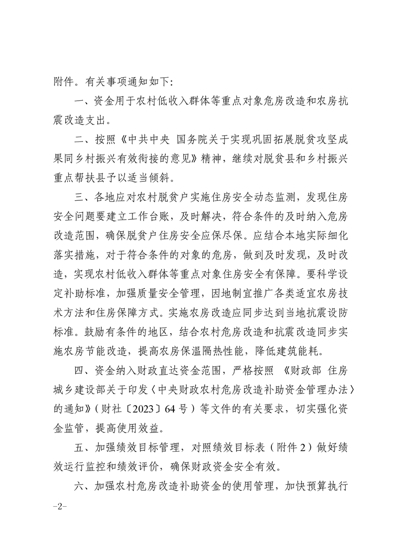 安徽省財政廳安徽省住房和城鄉(xiāng)建設(shè)廳關(guān)于下達2023年中央財政農(nóng)村危房改造補助資金的通知