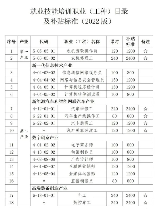 (1)培訓(xùn)機(jī)構(gòu)補(bǔ)貼:按照省級工種目錄及補(bǔ)貼標(biāo)準(zhǔn)執(zhí)行(詳見下表就業(yè)技能培訓(xùn)職業(yè)(工種)目錄及補(bǔ)貼標(biāo)準(zhǔn)(2022版)