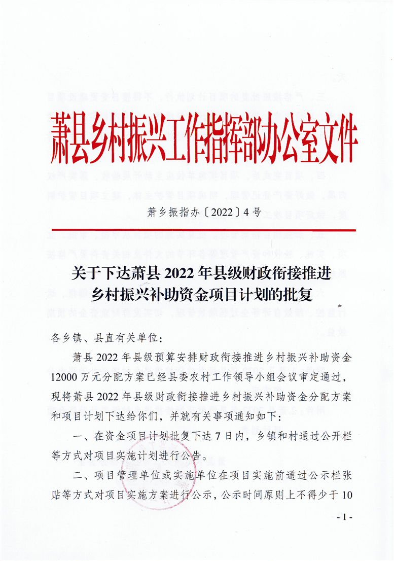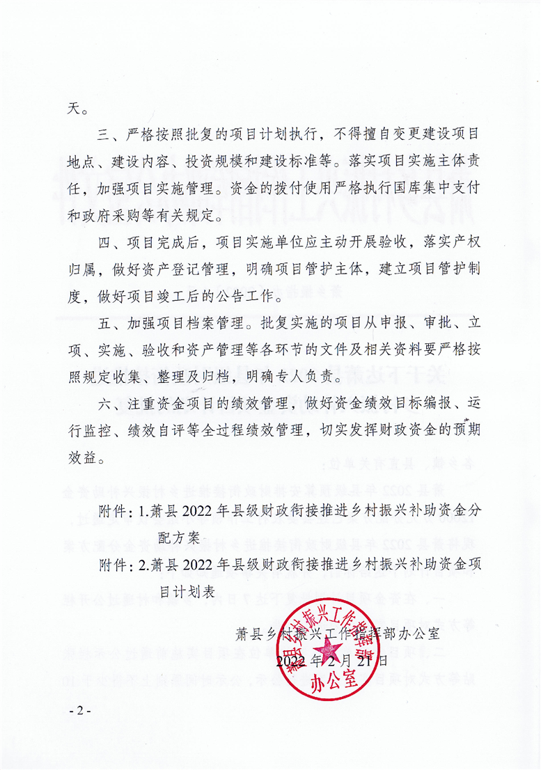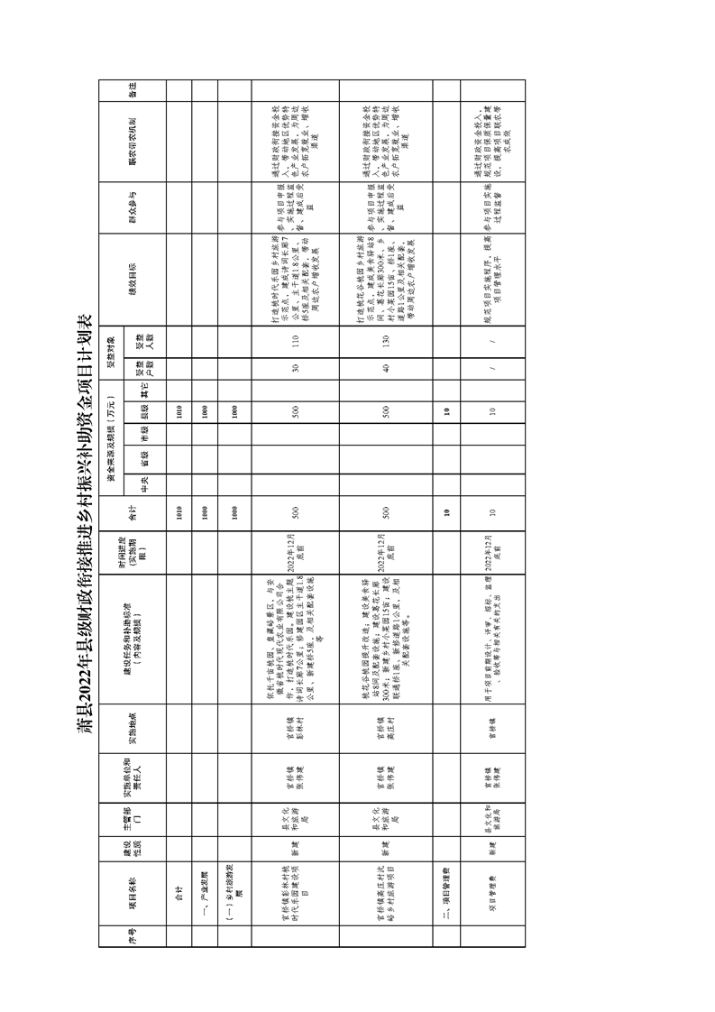 蕭縣2022年縣級財政銜接推進(jìn)鄉(xiāng)村振興補(bǔ)助資金分配方案、項目計劃表
