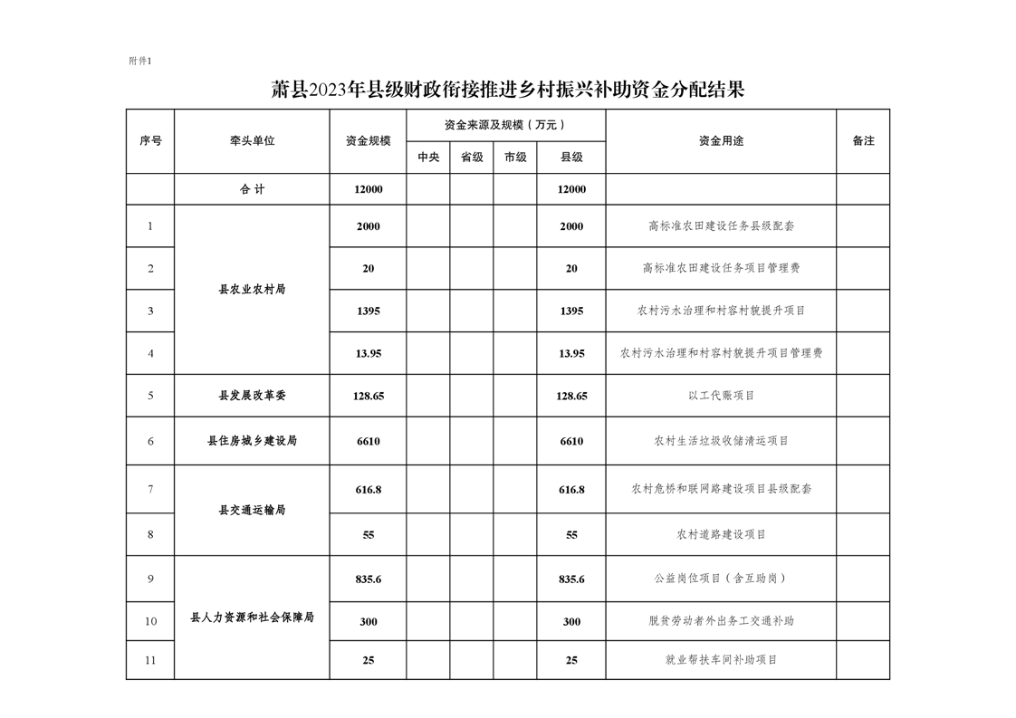 蕭縣2023年縣級財政銜接推進(jìn)鄉(xiāng)村振興補(bǔ)助資金分配方案已經(jīng)縣委農(nóng)村工作領(lǐng)導(dǎo)小組會議審定、批復(fù)下達(dá),參照原安徽省扶貧辦、安徽省財政廳《關(guān)于完善扶貧項(xiàng)目資金公告公示制度的實(shí)施意見》(皖扶辦〔2018〕118號)精神,現(xiàn)將資金分配結(jié)果公告如下: