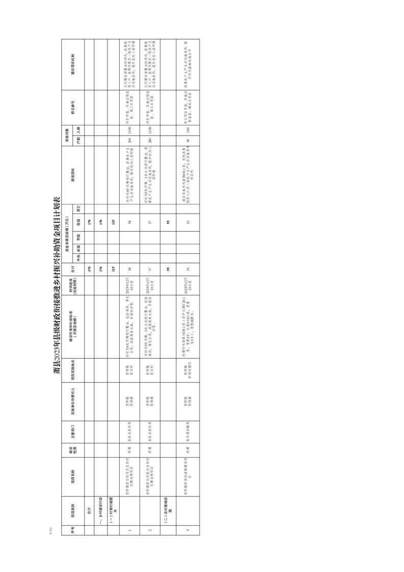 【計(jì)劃安排情況】關(guān)于下達(dá)蕭縣2023年縣級(jí)財(cái)政銜接推進(jìn)鄉(xiāng)村振興補(bǔ)助資金分配結(jié)果和項(xiàng)目計(jì)劃的批復(fù)