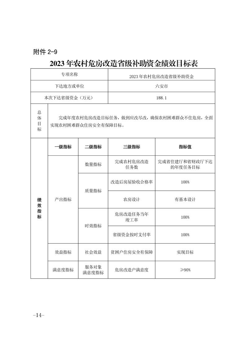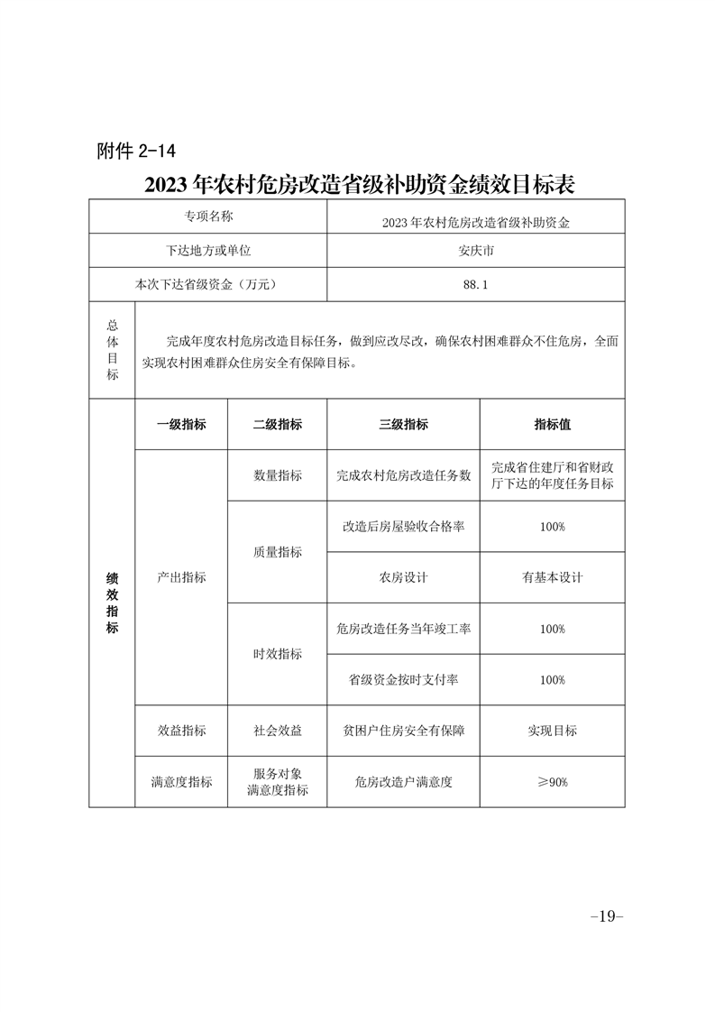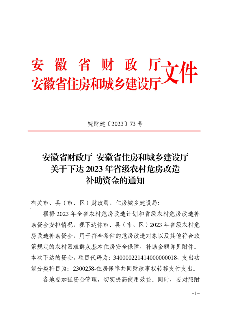 安徽省財(cái)政廳安徽省住房和城鄉(xiāng)建設(shè)廳關(guān)于下達(dá)2023年省級農(nóng)村危房改造補(bǔ)助資金的通知