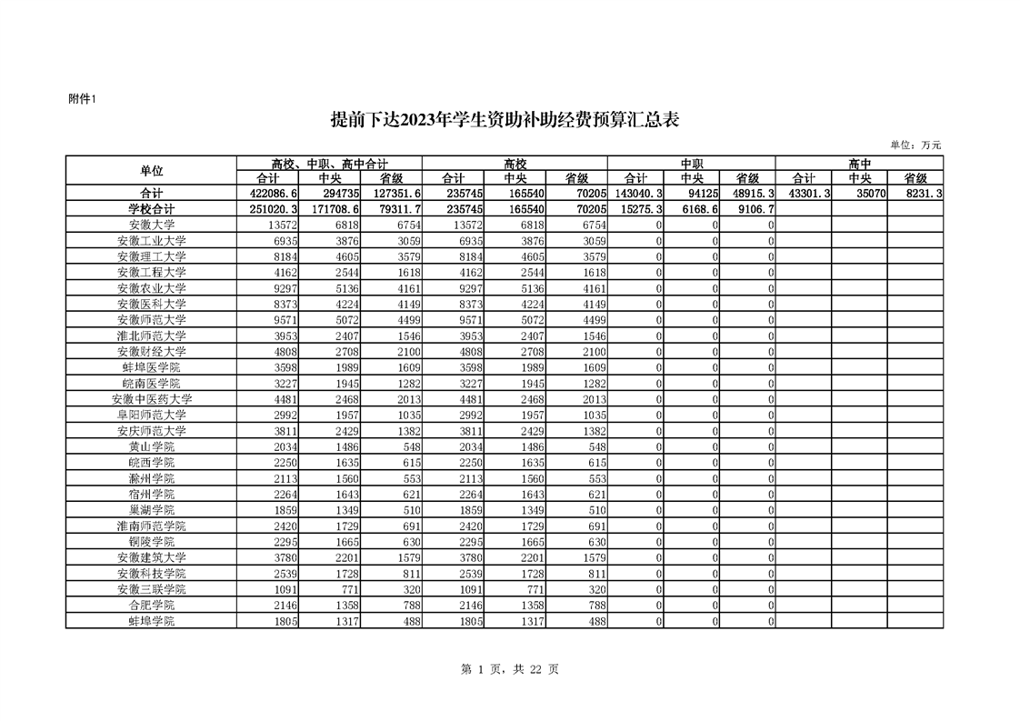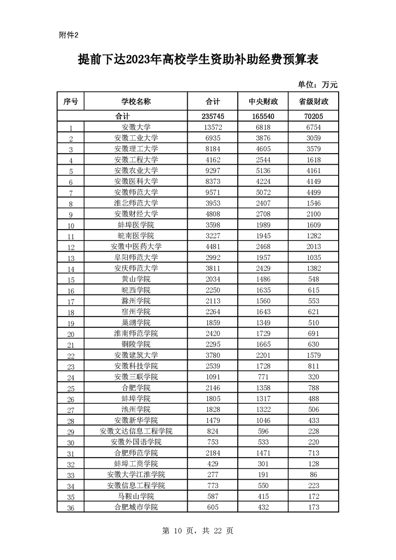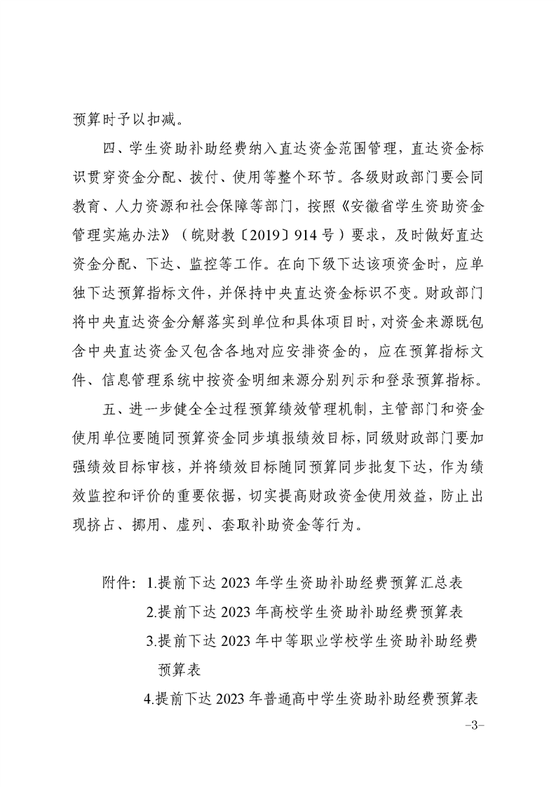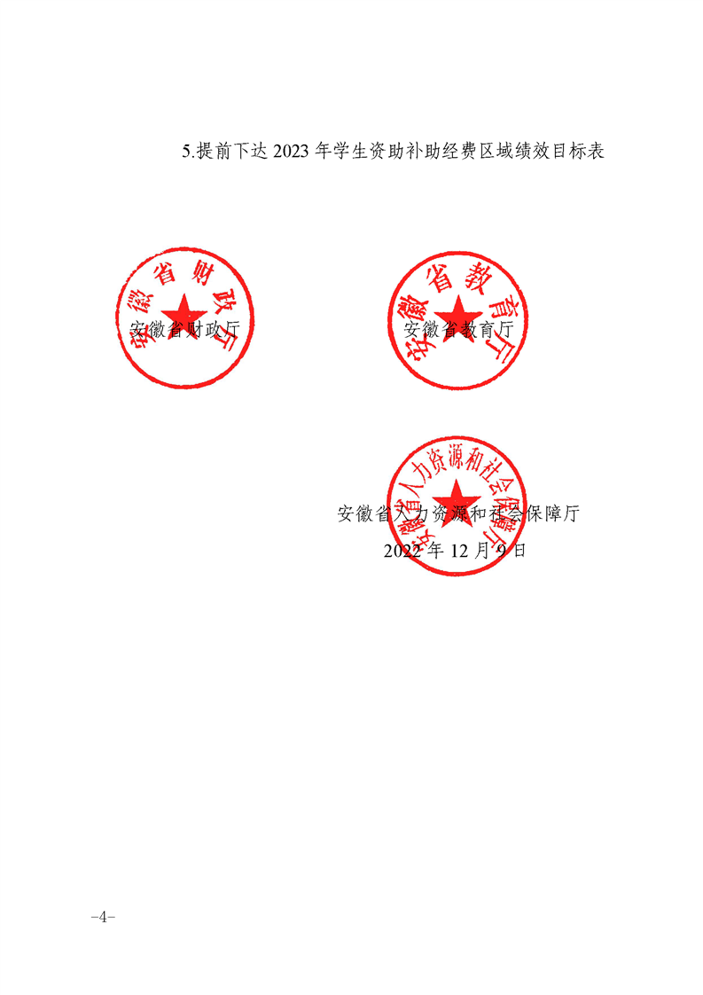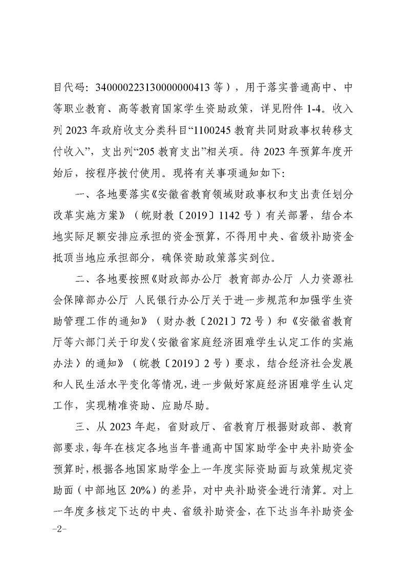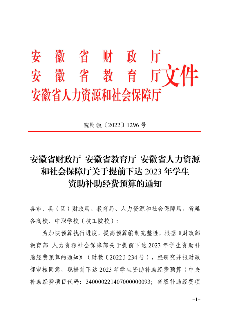 安徽省財政廳安徽省教育廳安徽省人力資源和社會保障廳關(guān)于提前下達2023年學生資助補助經(jīng)費預算的通知