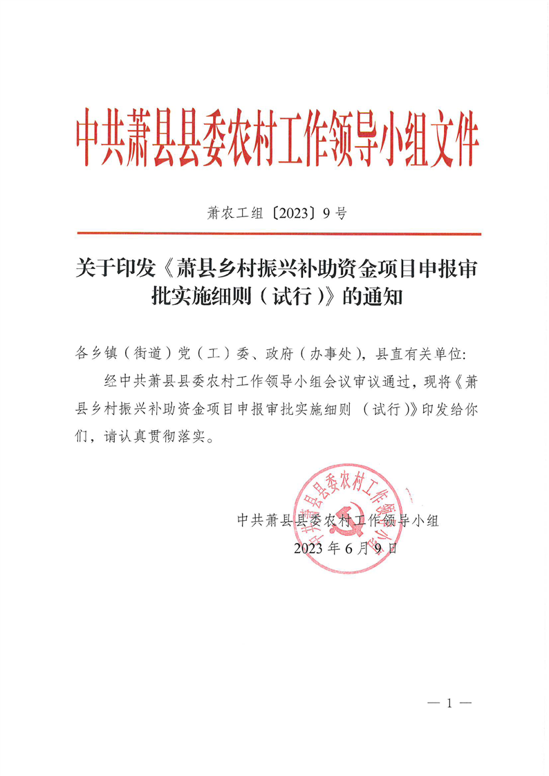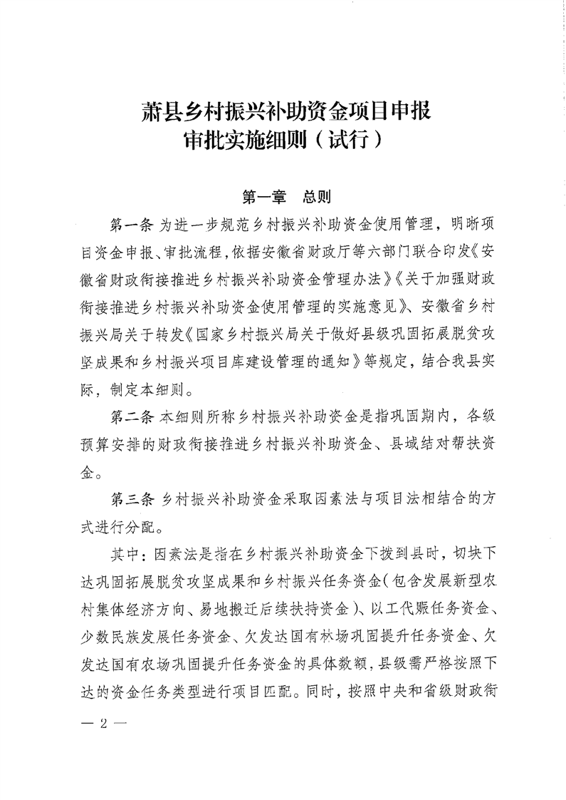 關于印發(fā)《蕭縣鄉(xiāng)村振興補助資金項目申報審批實施細則(試行)》的通知