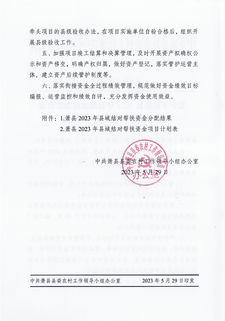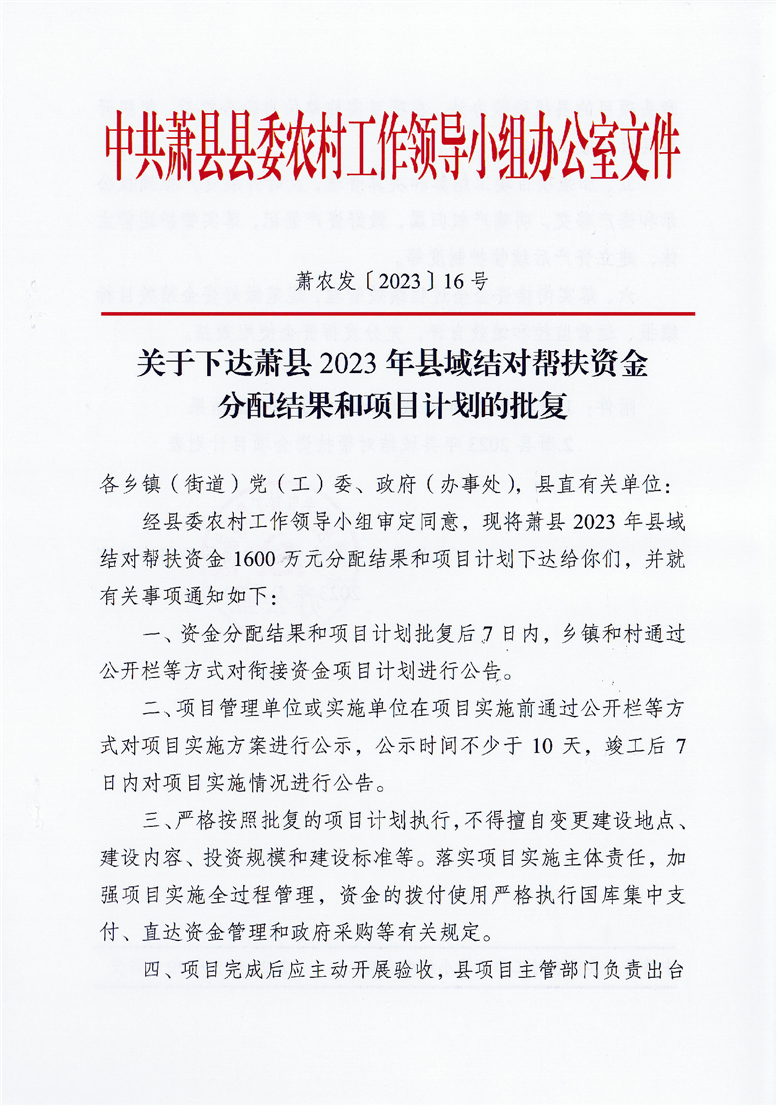 【計(jì)劃安排情況】關(guān)于下達(dá)蕭縣2023年縣域結(jié)對(duì)幫扶資金項(xiàng)目計(jì)劃的批復(fù)