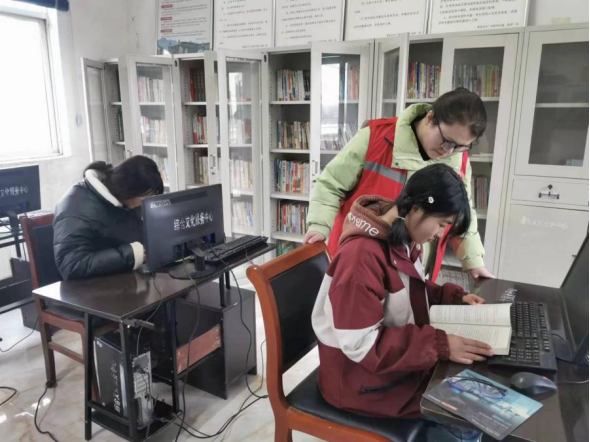 活動中志愿者帶領(lǐng)孩子們來到村農(nóng)家書屋,從青少年的必讀書目入手,讓孩子們選取具有文學性、趣味性、教育性的書籍,進行閱讀,并為孩子介紹推薦書籍,引導他們愛讀書、讀好書、善讀書。在閱讀過程中遇到不會的題目、看不懂的字,志愿者現(xiàn)場對他們進行指導。