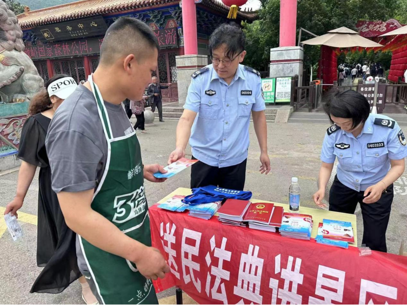 此次宣傳活動共發(fā)放宣傳資料200余份,接受群眾咨詢30余人次,進一步增強了游客群眾的法律意識,夯實群眾的風(fēng)險防范意識和自我保護能力,為轄區(qū)安全穩(wěn)定奠定堅實的法治基礎(chǔ)。