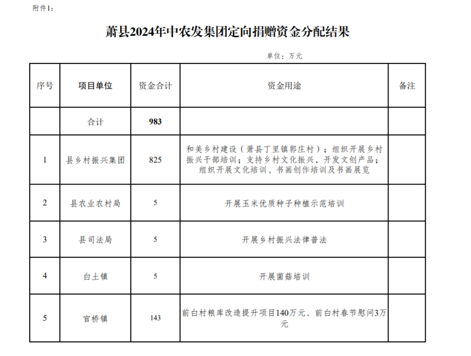 資金來(lái)源:中農(nóng)發(fā)集團(tuán)定向捐贈(zèng)資金983萬(wàn)元。