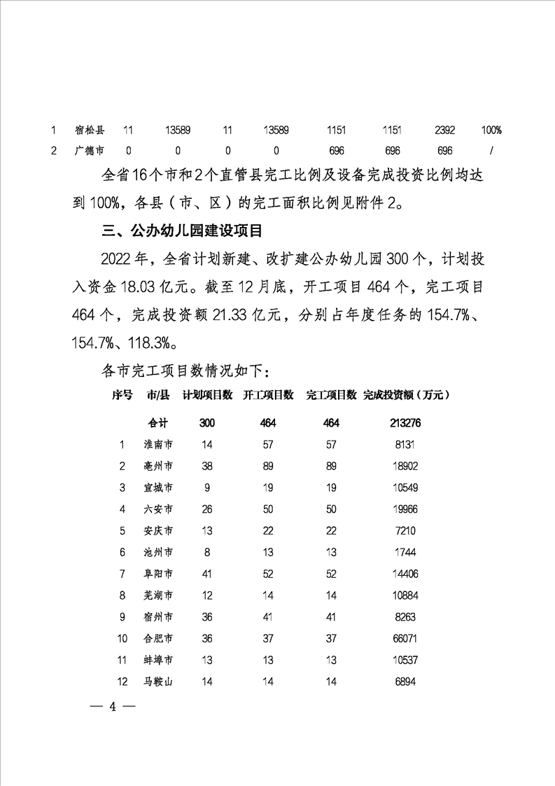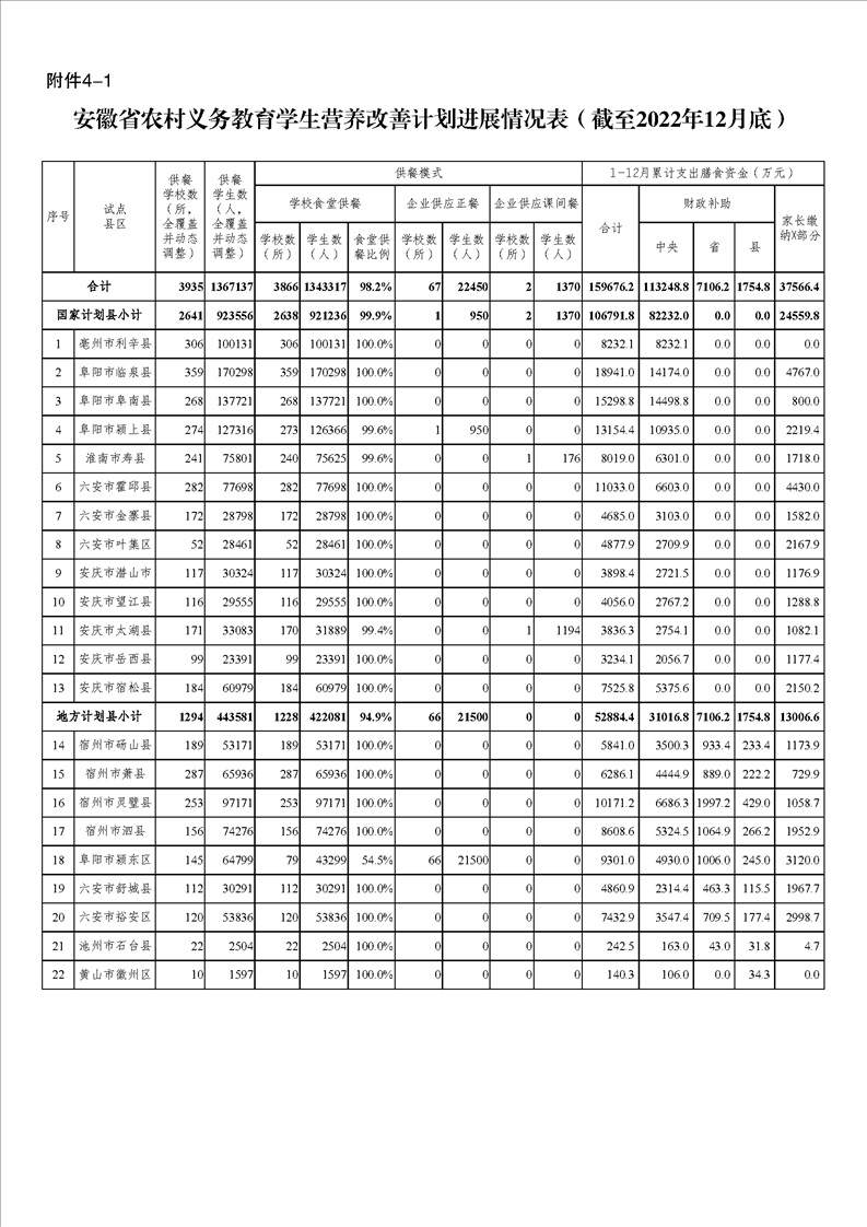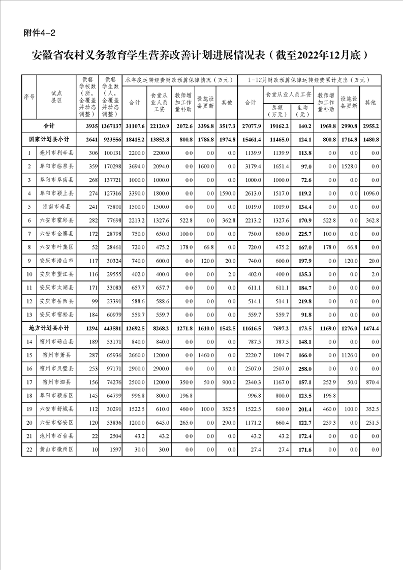 安徽省教育廳關(guān)于基礎(chǔ)教育項(xiàng)目建設(shè)及學(xué)生營(yíng)養(yǎng)改善計(jì)劃等截至12月底進(jìn)展的簡(jiǎn)要情況