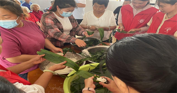 到達(dá)敬老院,志愿者忙碌起來(lái),把準(zhǔn)備好的糯米、大棗、粽葉、粽繩等搬上餐桌,伸展粽葉、填裝糯米、包裹捆綁,志愿者用巧手制成一個(gè)個(gè)漂亮的粽子。煮熟后的粽香飄滿整個(gè)院子,讓院內(nèi)老人們“嘗到”了家的溫暖,老人們對(duì)志愿者的暖心行動(dòng)表達(dá)了感謝。隨后鎮(zhèn)老年大學(xué)的學(xué)員為敬老院的老人們表演了愛(ài)看的戲曲節(jié)目,敬老院里洋溢著歡聲笑語(yǔ),一派溫馨祥和的畫(huà)面。