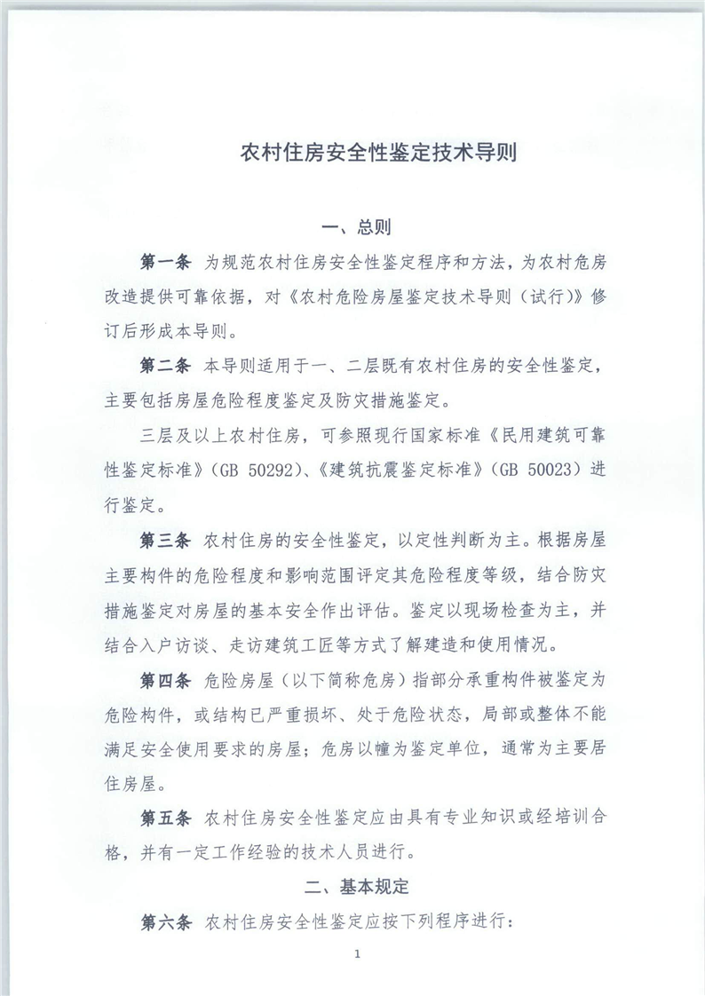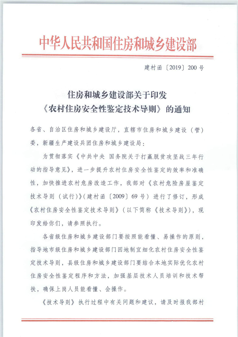 印發(fā)《農(nóng)村住房安全鑒定技術(shù)導(dǎo)則》的通知