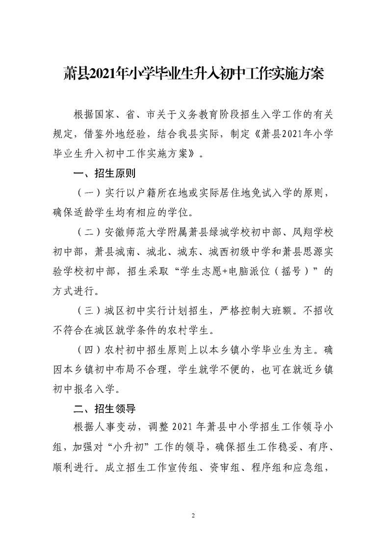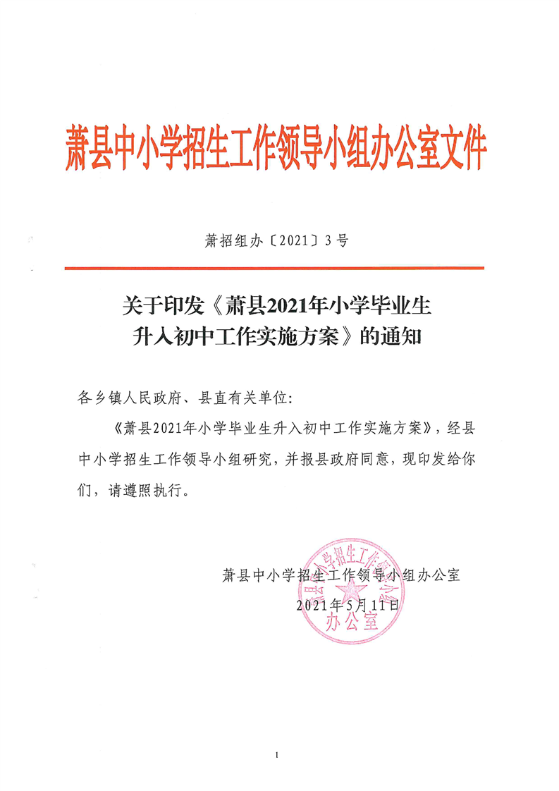 關(guān)于印發(fā)《蕭縣2021年小學(xué)畢業(yè)生升入初中工作實施方案》的通知