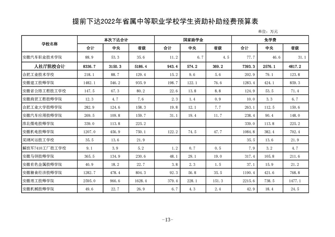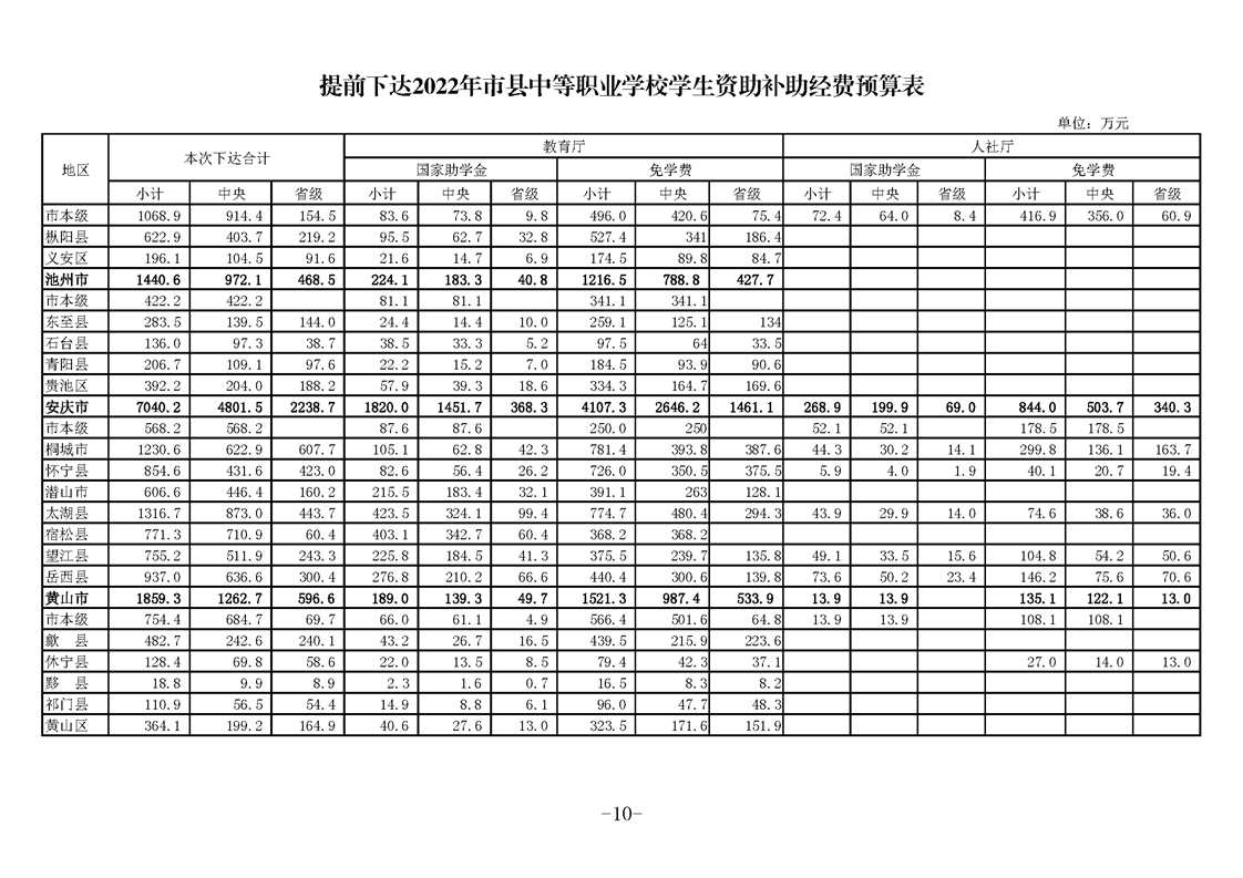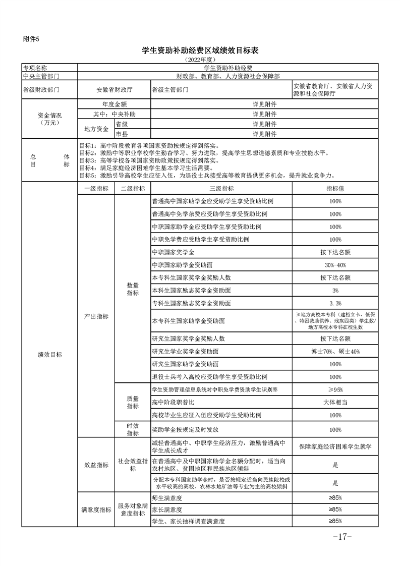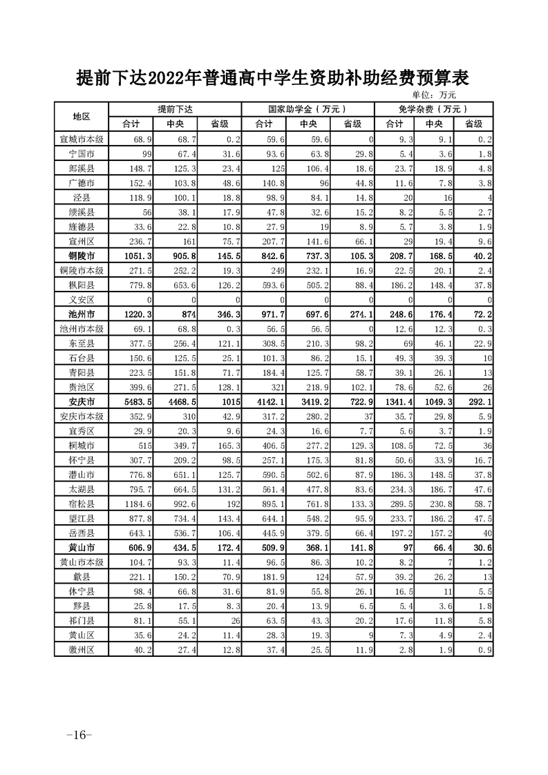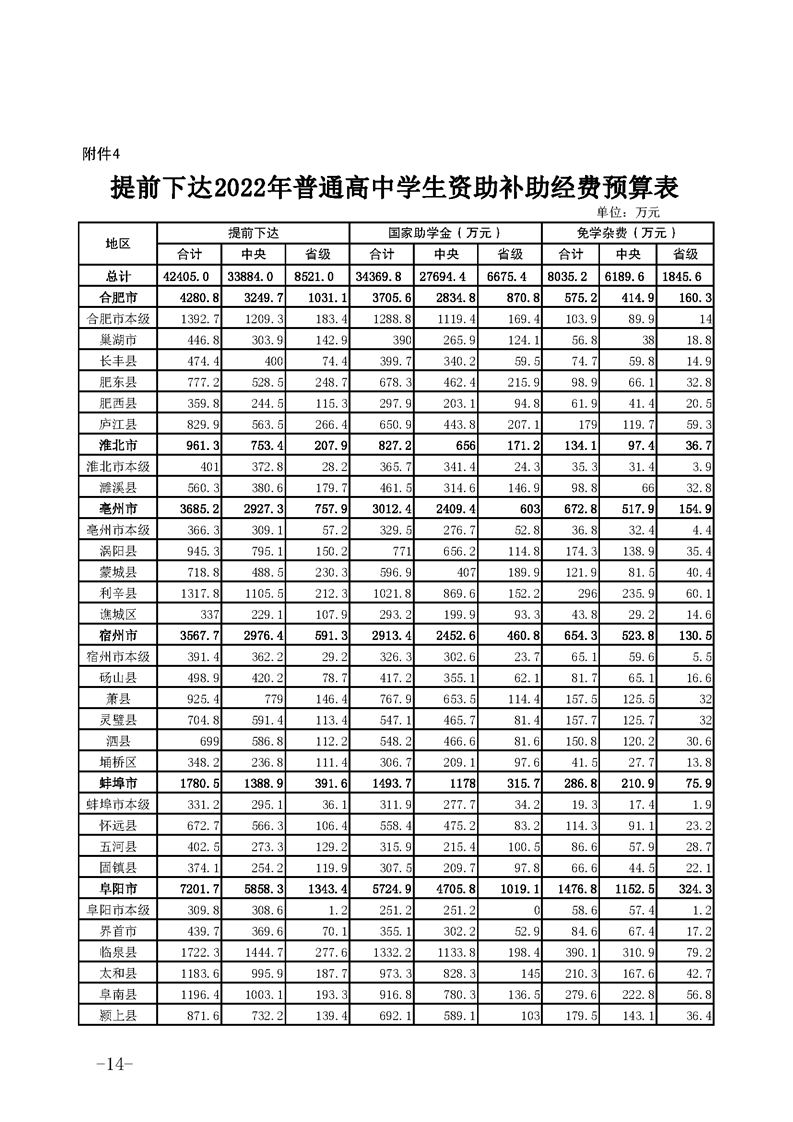 安徽省財政廳安徽省教育廳安徽省人力資源和社會保障廳關(guān)于提前下達2022年學(xué)生資助補助經(jīng)費預(yù)算的通知