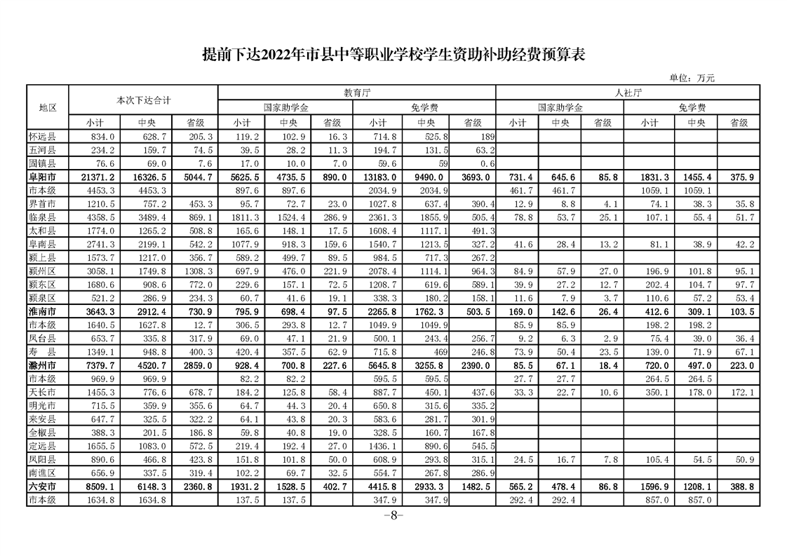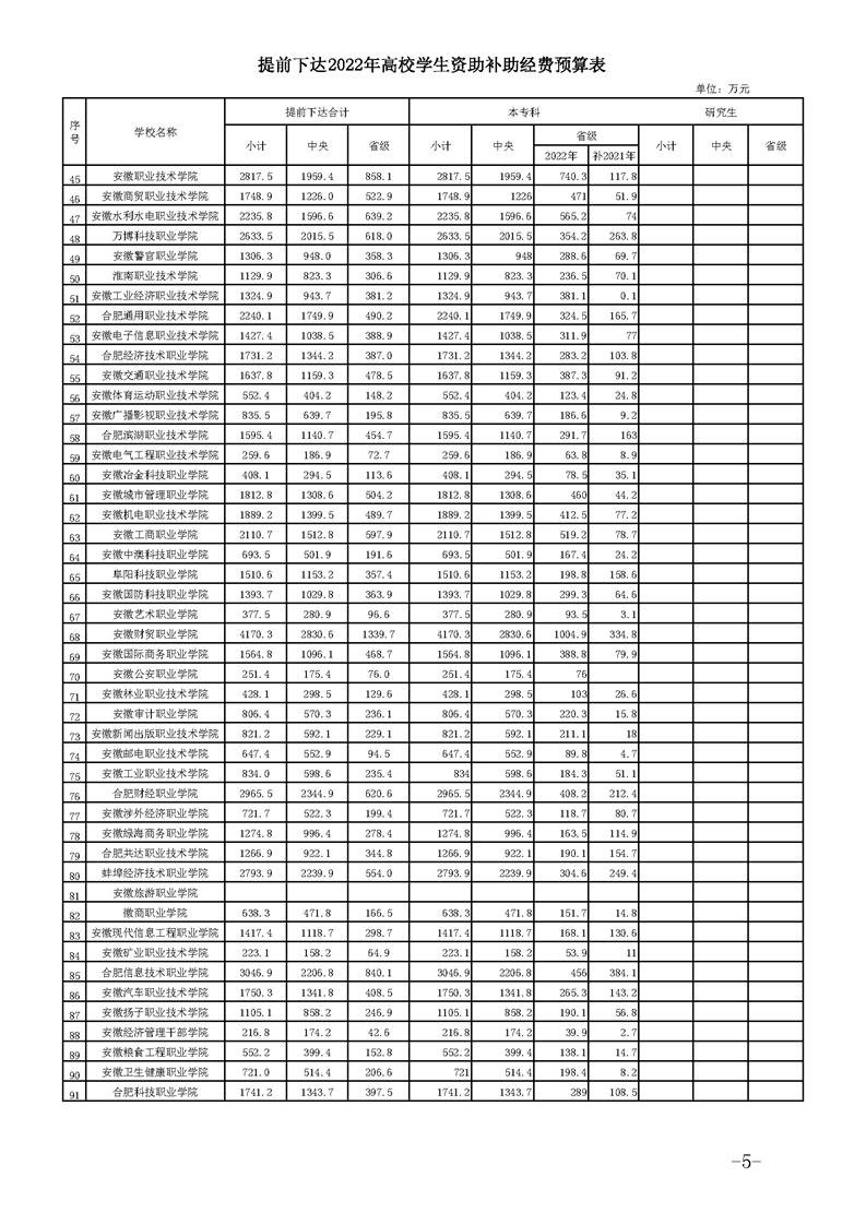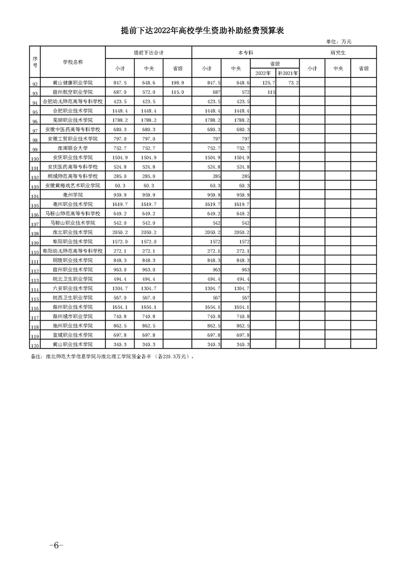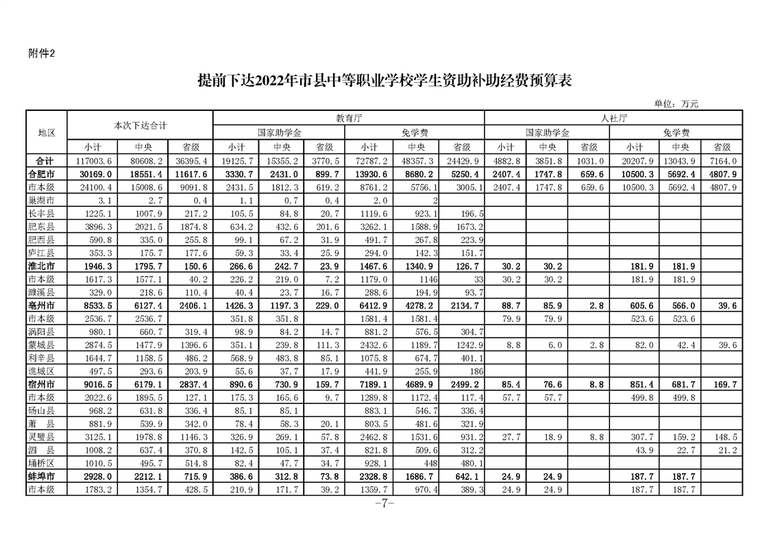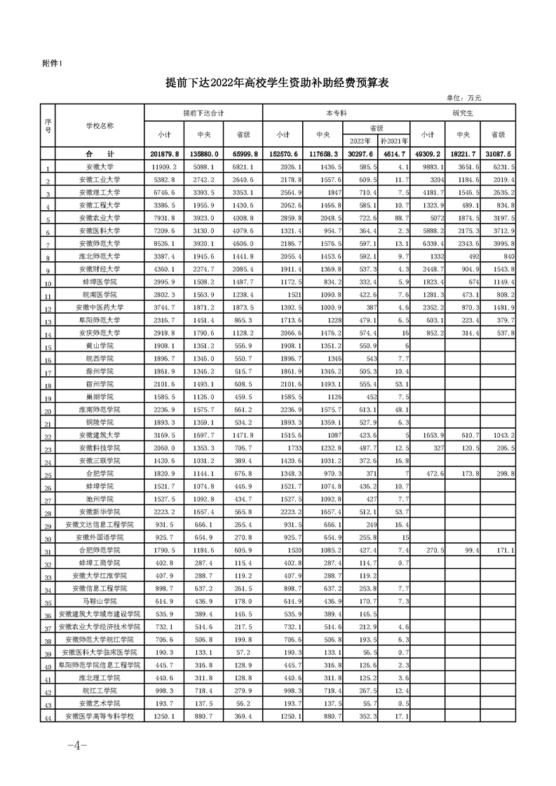 安徽省財政廳安徽省教育廳安徽省人力資源和社會保障廳關(guān)于提前下達2022年學(xué)生資助補助經(jīng)費預(yù)算的通知