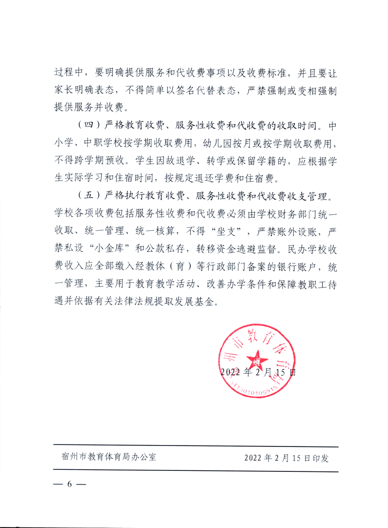 宿州市教育體育局關(guān)于規(guī)范2022年春季收費(fèi)行為的通知