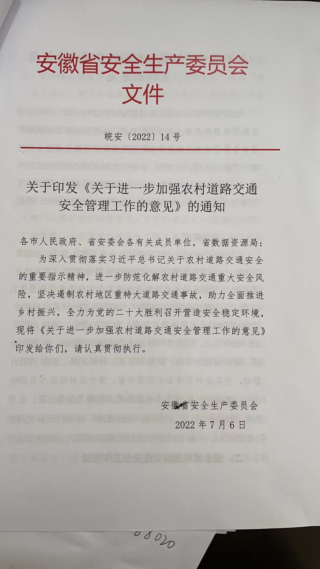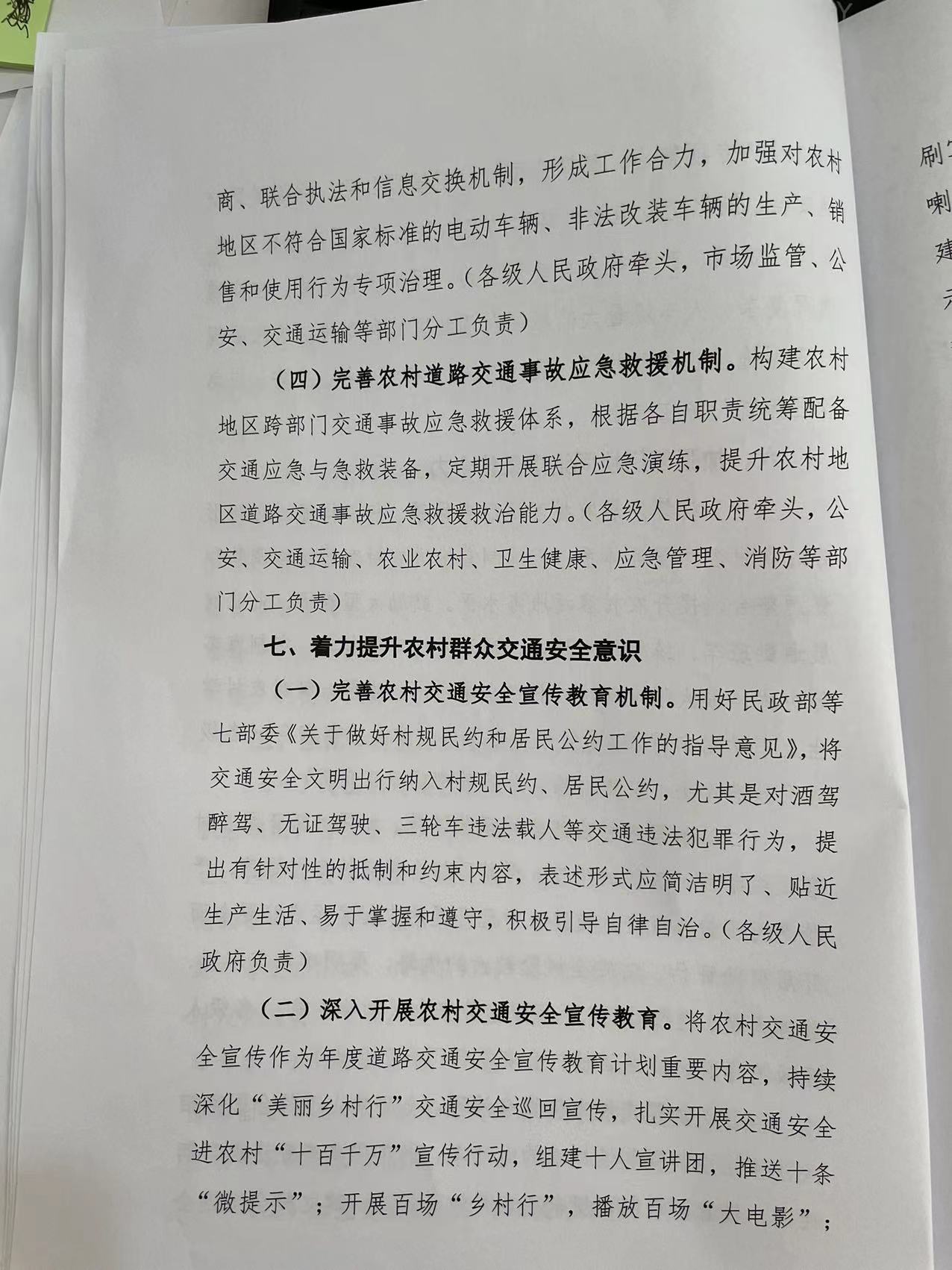 關(guān)于印發(fā)《關(guān)于進一步加強農(nóng)村道路交通安全管理工作的意見》的通知