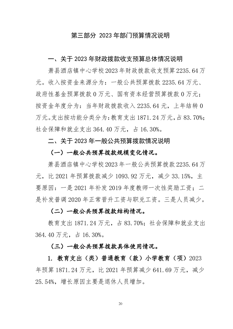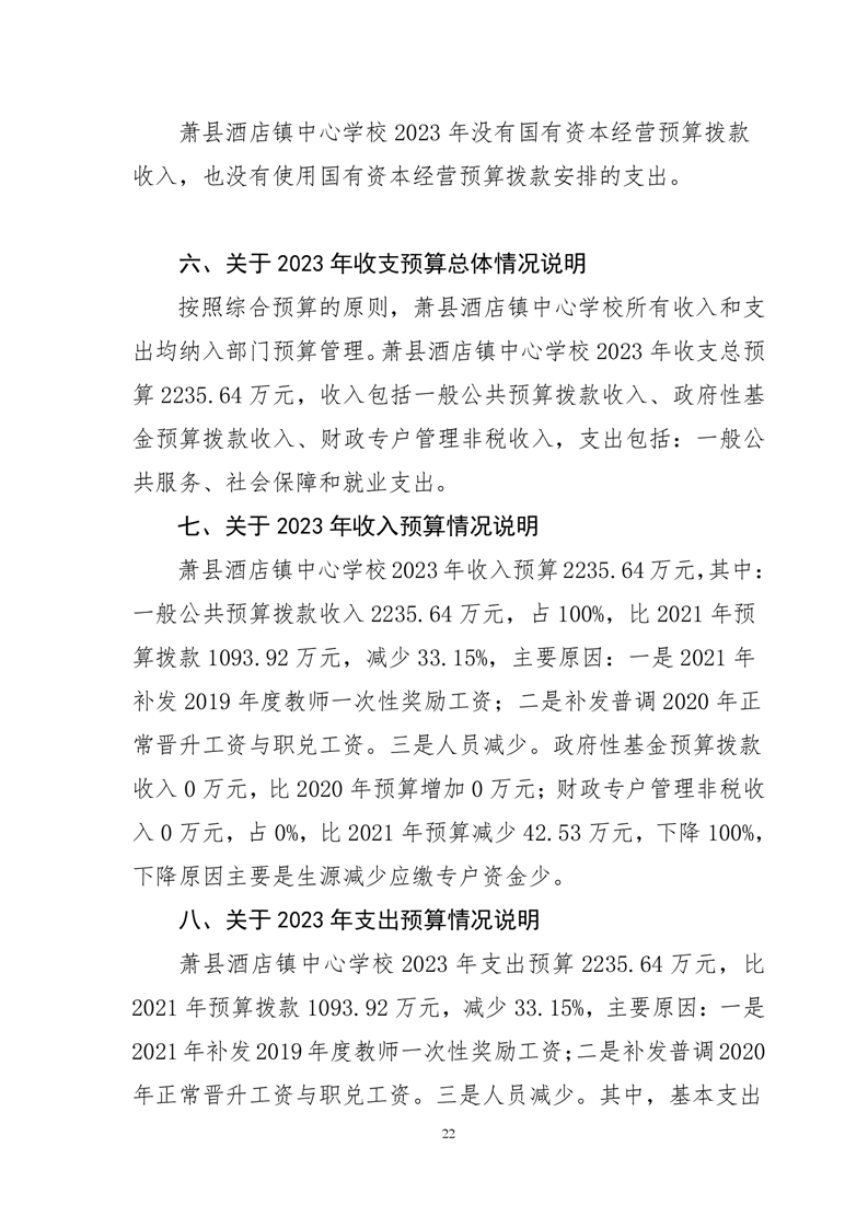 【年度經(jīng)費預(yù)決算信息】蕭縣酒店鎮(zhèn)中心學(xué)校2023年度預(yù)算