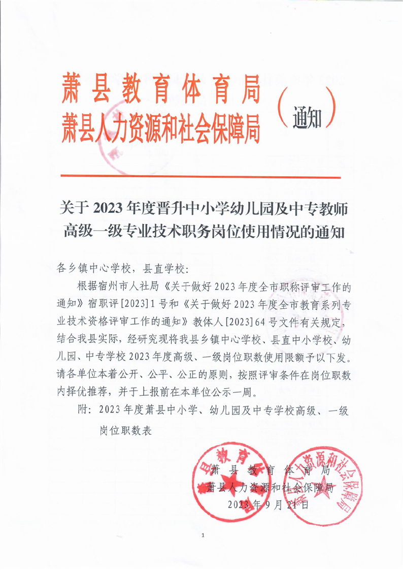 【評審通知】關于2023年度晉升中小學幼兒園及中專教師高級一級專業(yè)技術職務崗位使用情況的通知