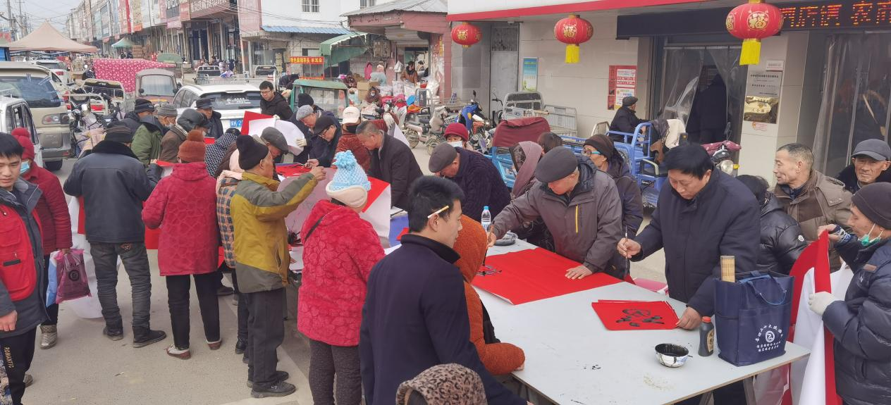 為匯聚文化力量,弘揚傳統(tǒng)文化,助力鄉(xiāng)村振興提質(zhì)增效,1月29日上午,蕭縣酒店鎮(zhèn)政府組織鎮(zhèn)文化站、酒店鎮(zhèn)中心校、酒店鎮(zhèn)老年書畫研究會、酒店鎮(zhèn)衛(wèi)生院,在蕭縣農(nóng)商銀行酒店支行開展“新年送福送春聯(lián)”活動。