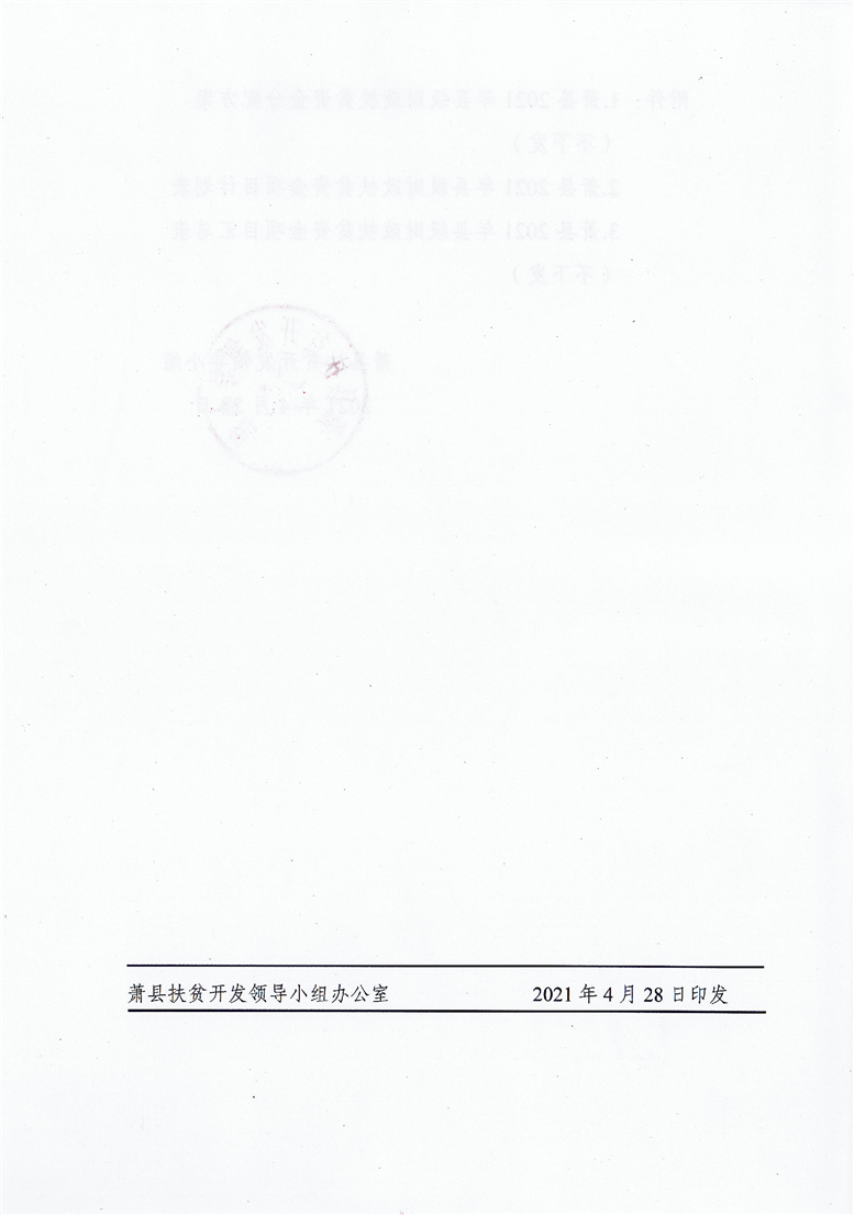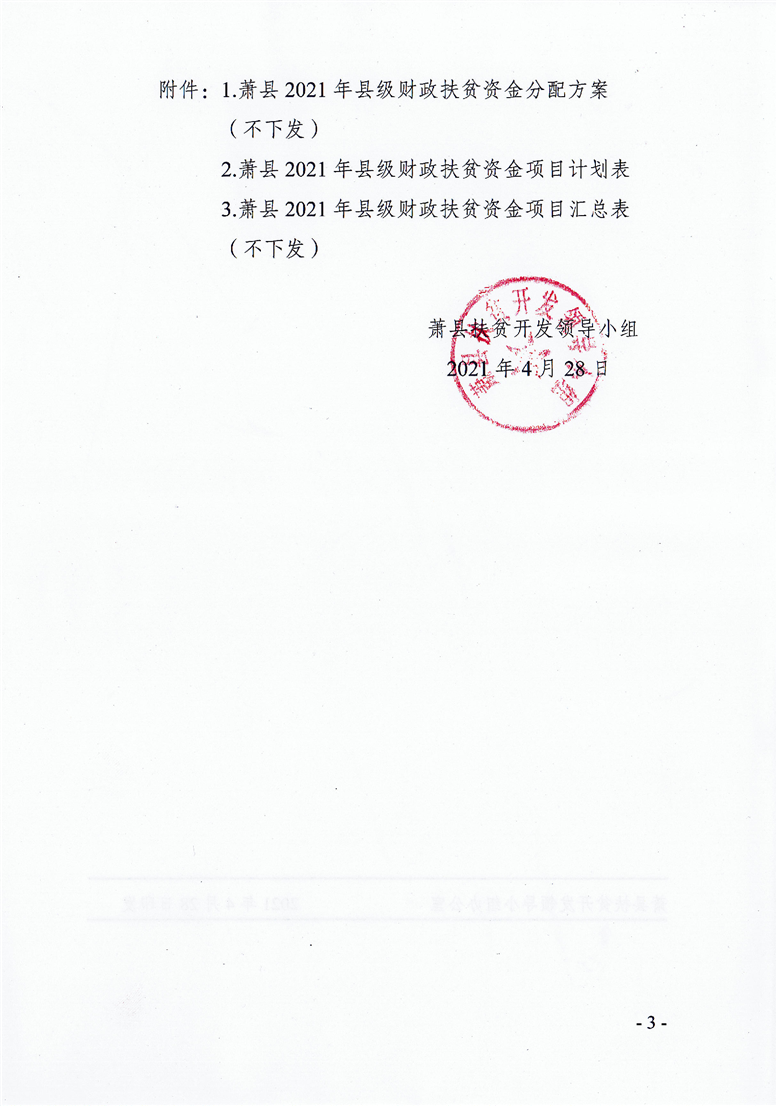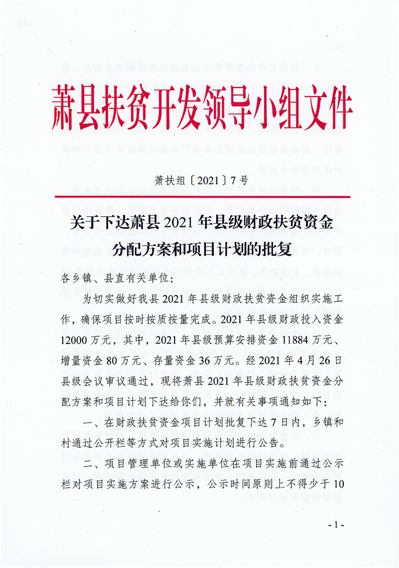 關(guān)于下達(dá)蕭縣2021年縣級財政扶貧資金分配方案和項目計劃的批復(fù)
