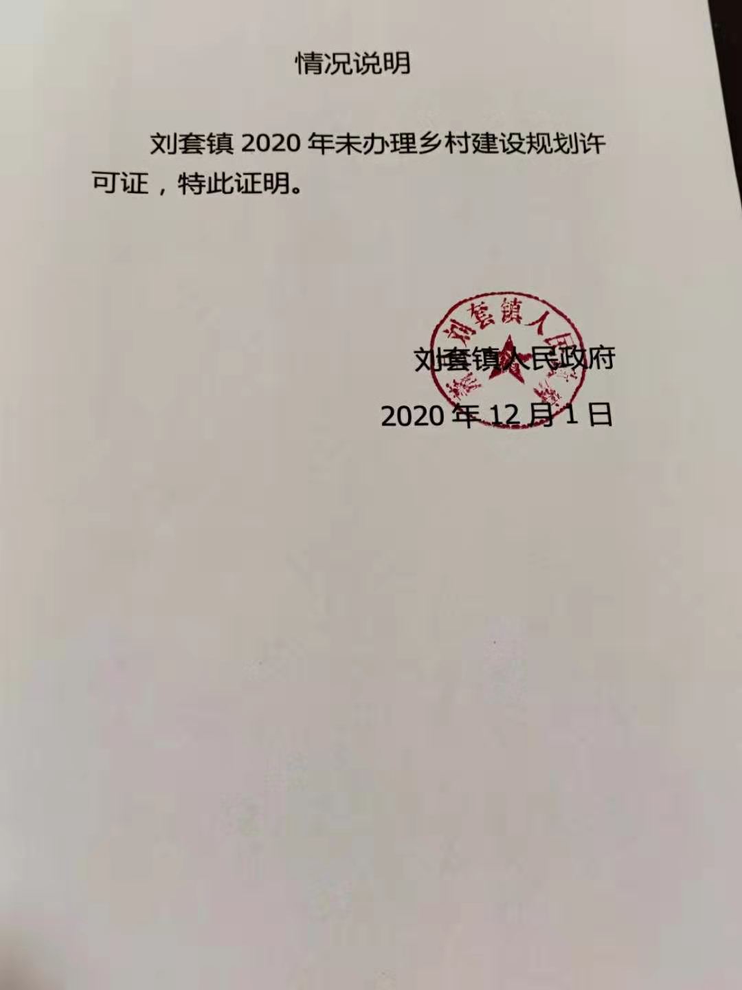 2020年劉套鎮(zhèn)辦理鄉(xiāng)村建設(shè)規(guī)劃許可證情況說明