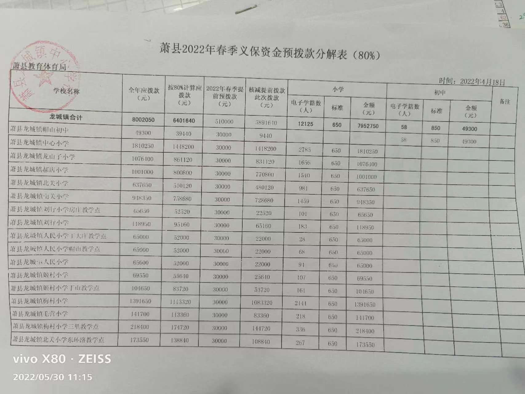龍城鎮(zhèn)2022年春季義保資金預(yù)撥款