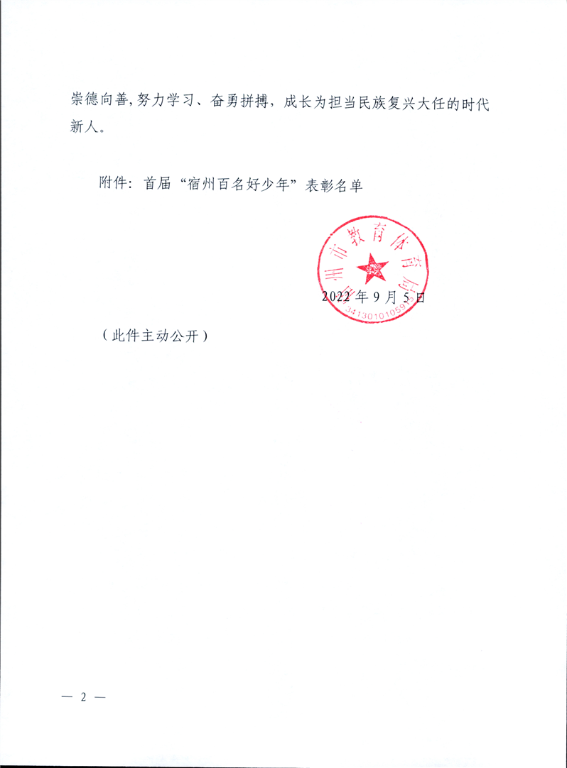 關(guān)于表彰首屆宿州百名好少年的決定 |