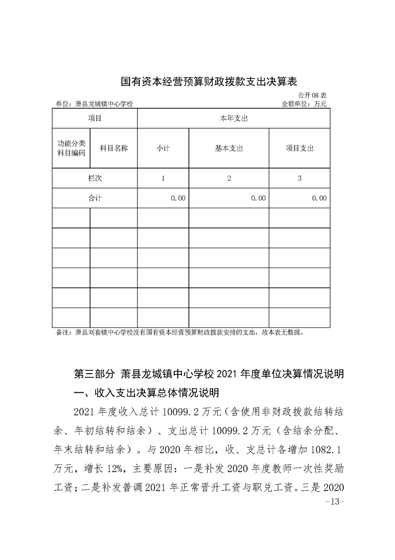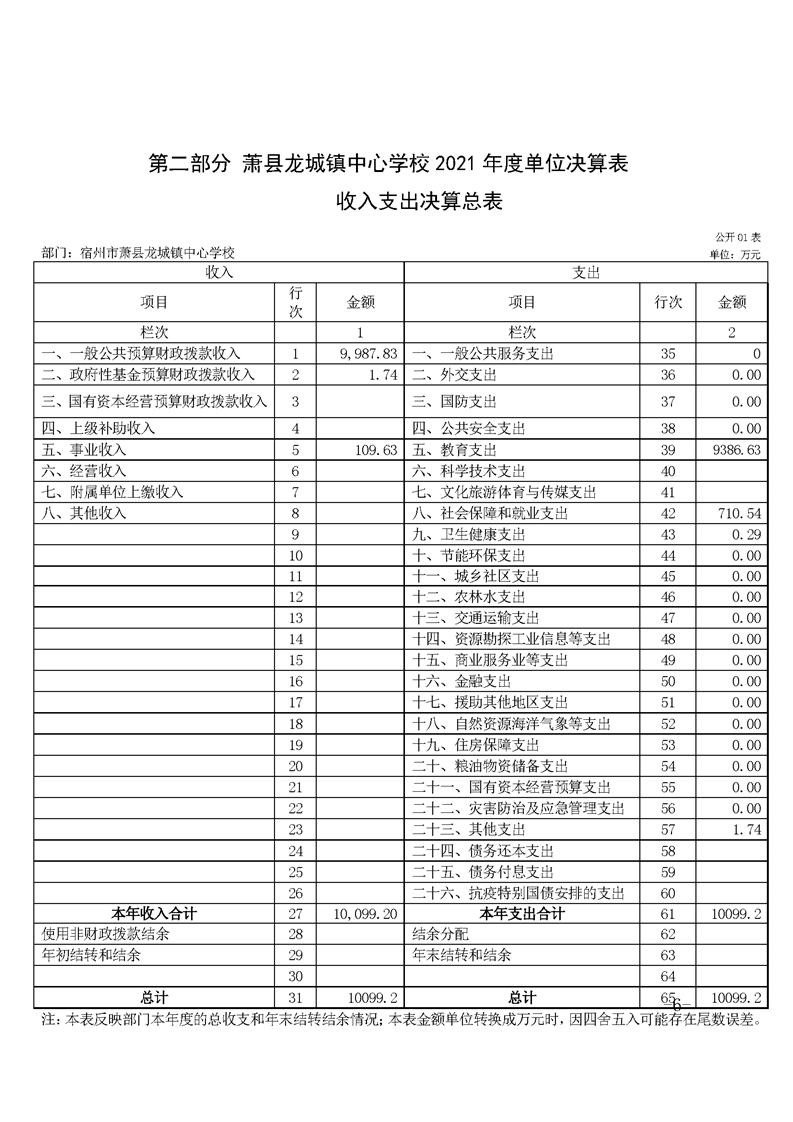 蕭縣龍城鎮(zhèn)中心學(xué)校2021年度單位決算