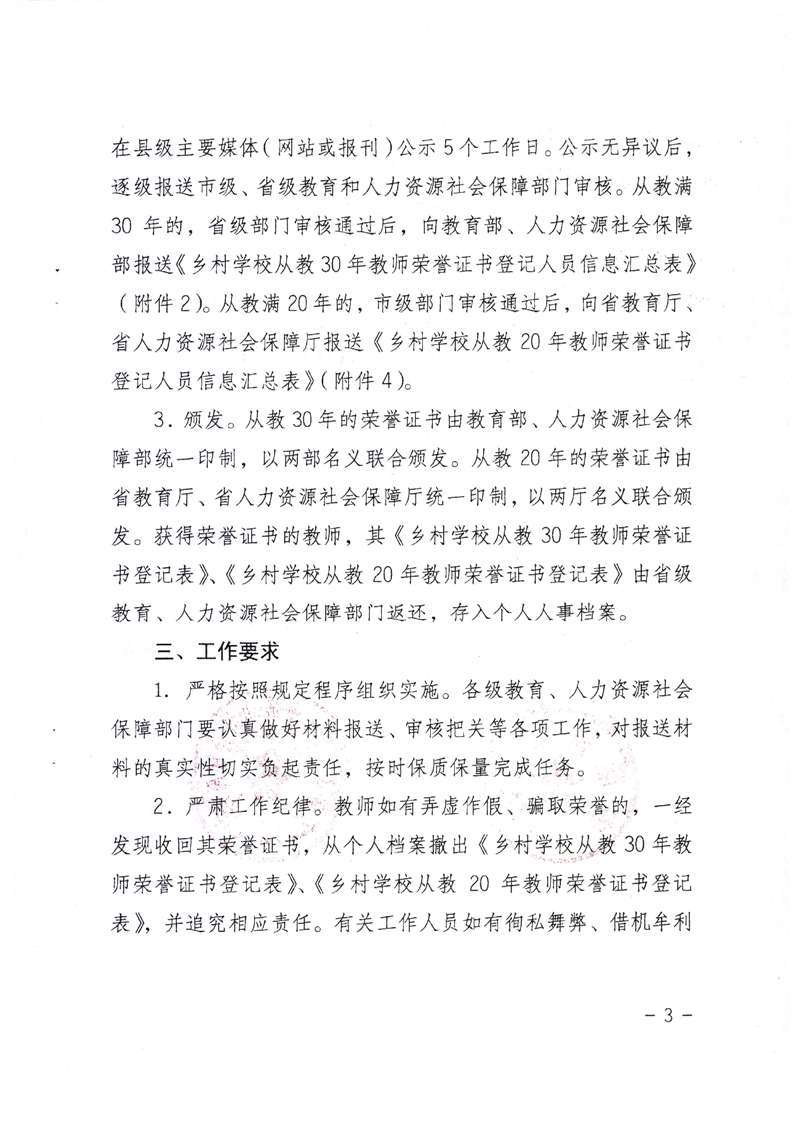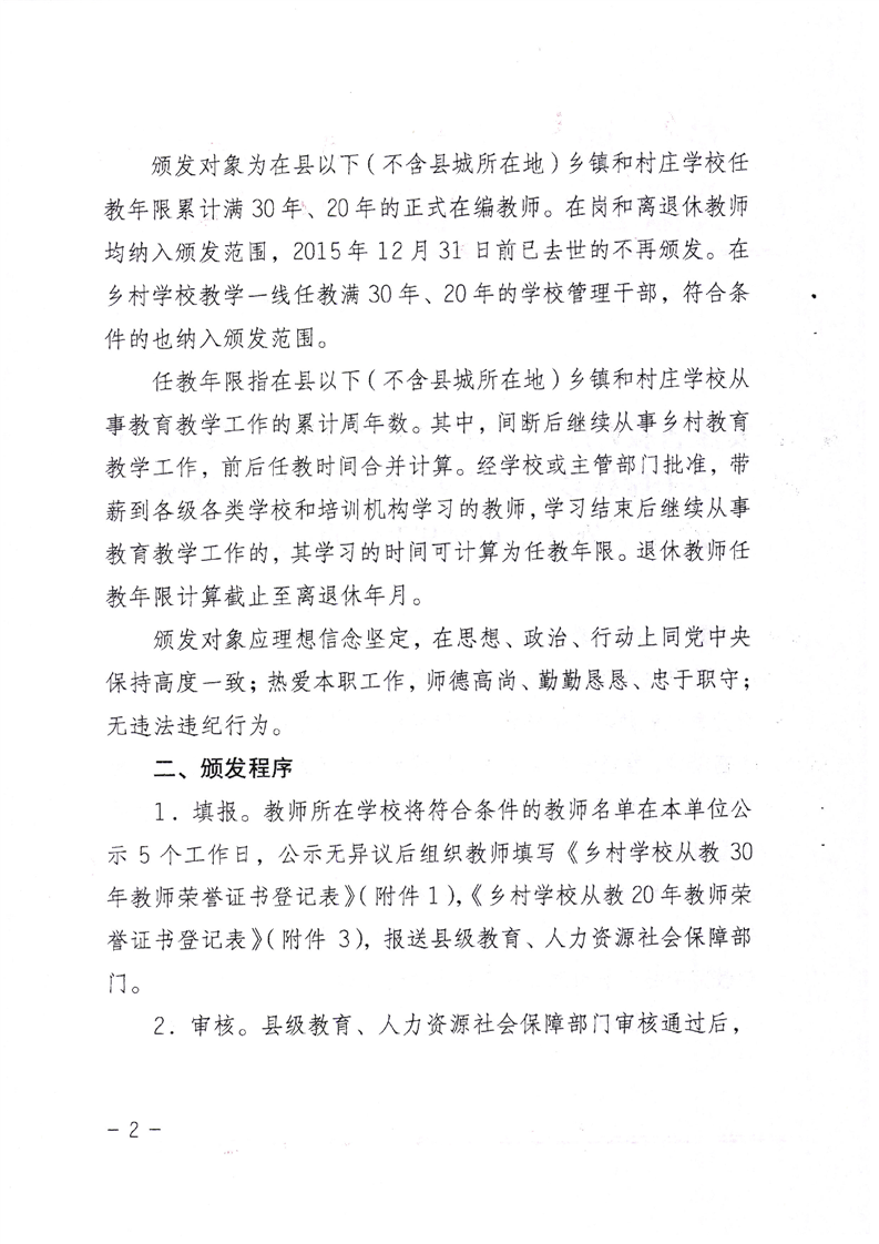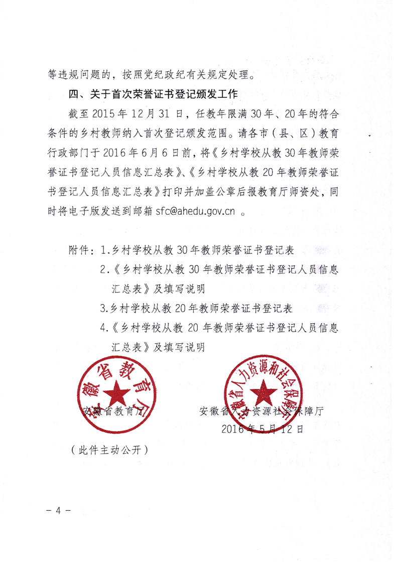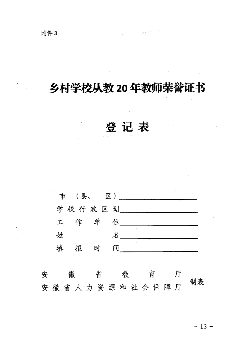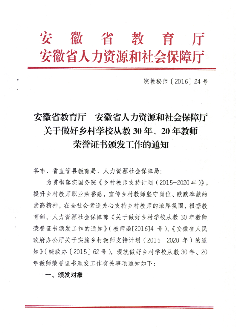 安徽省教育廳安徽省人力資源和社會保障廳關于做好鄉(xiāng)村學校從教30年、20年教師榮譽證書頒發(fā)工作的通知